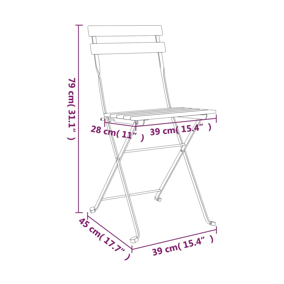 Estas sillas de cafetería plegables son un aporte perfecto para el jardín y la terraza, y crean además una impresión duradera. Material duradero: La madera maciza de acacia es un hermoso material natural. La madera de acacia es una madera dura tropical, densa, robusta y duradera.Estructura estable: La estructura de acero garantiza su robustez y estabilidad.Diseño plegable: Las sillas de jardín se pueden plegar fácilmente cuando no se utilicen, para facilitar su almacenamiento y transporte. Información útil:Para facilitar al máximo el montaje, cada producto se entrega con un manual. Nota:Para asegurarte de que tus muebles de exterior se mantengan hermosos, recomendamos protegerlos con una funda impermeable.