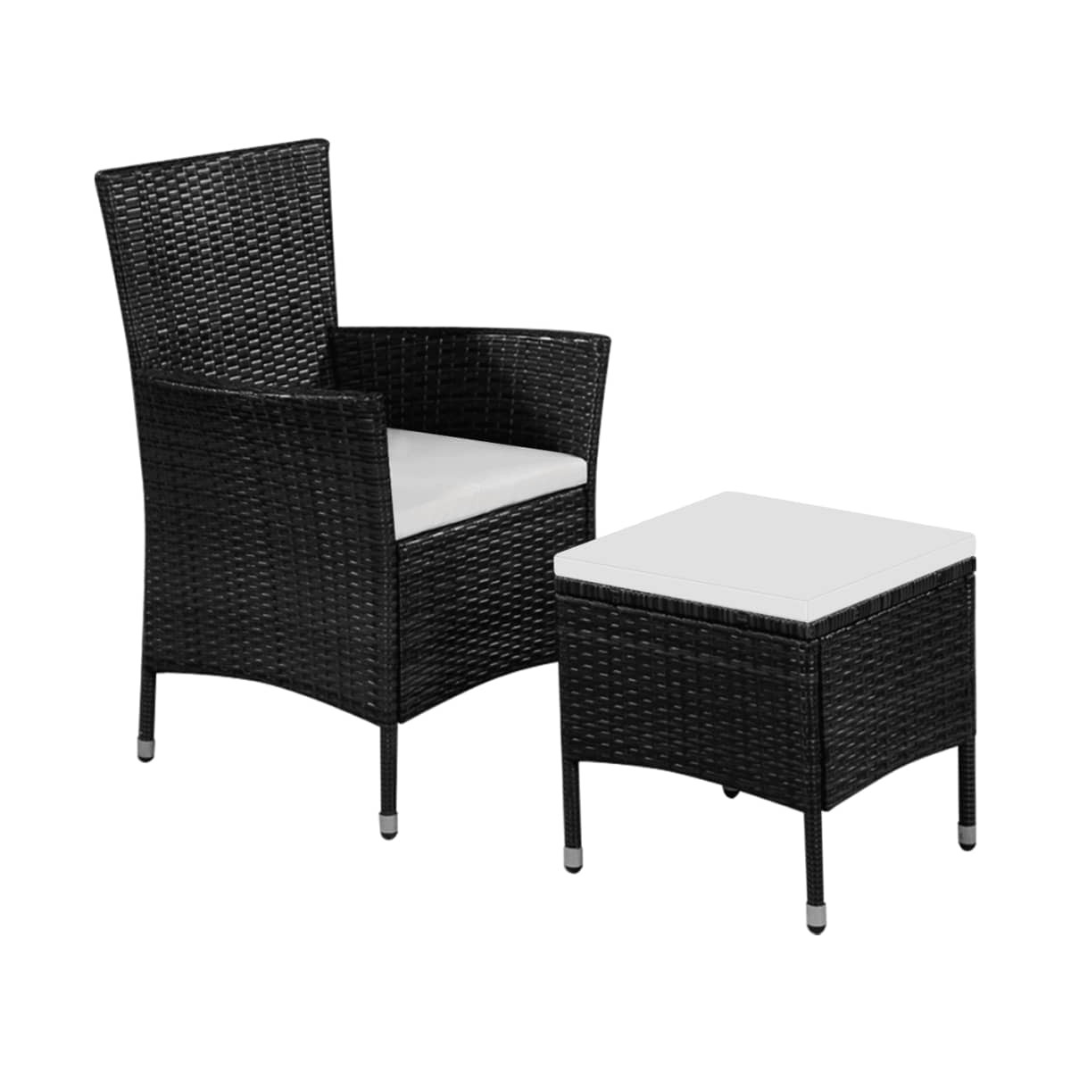 Este conjunto de muebles de jardín de ratán sintético, con un diseño exquisito, consta de 1 mesa, 1 taburete y 2 cojines de asiento extraíbles y será el centro de atención de su jardín o patio. Gracias al ratán sintético resistente al agua, este juego de muebles de exterior es fácil de limpiar, resistente y adecuado para uso diario al aire libre. La estructura de acero hace que la silla y el taburete sean robustos y estables, pero como la construcción también es ligera, todos los elementos son fáciles de mover para adaptarse a cualquier ajuste. También se entrega con cojines de asiento muy cómodos y gruesos para la máxima comodidad. Las cubiertas de poliéster que apenas requieren mantenimiento también se pueden quitar y lavar. La entrega incluye 1 silla de comedor, 1 taburete y 2 cojines de asiento extraíbles. Nota: Se recomienda cubrir el set en caso de lluvia, nieve y heladas.