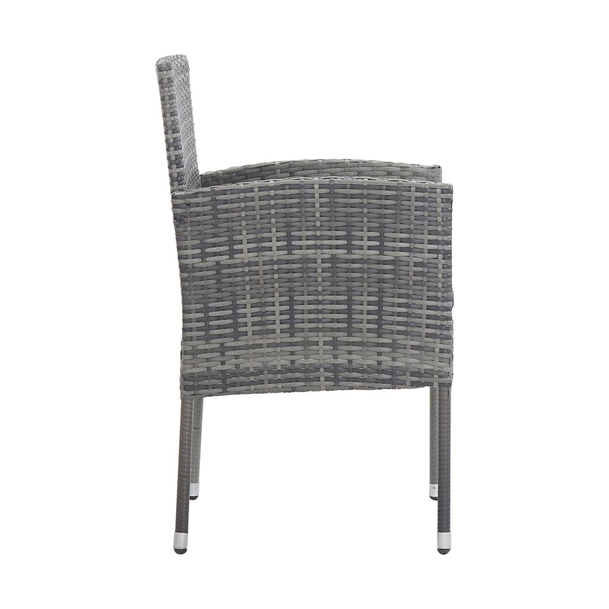 Estas sillas de jardín de ratán sintético serán una gran elección para cenar o relajarte con tu familia. Material duradero: El ratán sintético, también conocido como ratán sintético, es un material sintético resistente y de bajo mantenimiento que se parece al ratán natural. Es ligero, fácil de limpiar y se usa comúnmente para muebles de exterior debido a su durabilidad y propiedades resistentes a la intemperie.Estructura robusta y estable: La estructura de acero garantiza que el mueble de jardín sea resistente y estable para usarlo a diario al aire libre.Experiencia de asiento cómoda: Estos muebles de exterior, completos con cojines acolchados gruesos, ofrecen una experiencia de asiento cómoda.Amplios usos: Esta silla de exterior tiene una amplia gama de usos y puede satisfacer fácilmente tus necesidades en cualquier entorno al aire libre, como jardines, patios, balcones, etc. Información útil:Para asegurarte de que tus muebles de exterior se mantengan hermosos, recomendamos protegerlos con una funda impermeable.