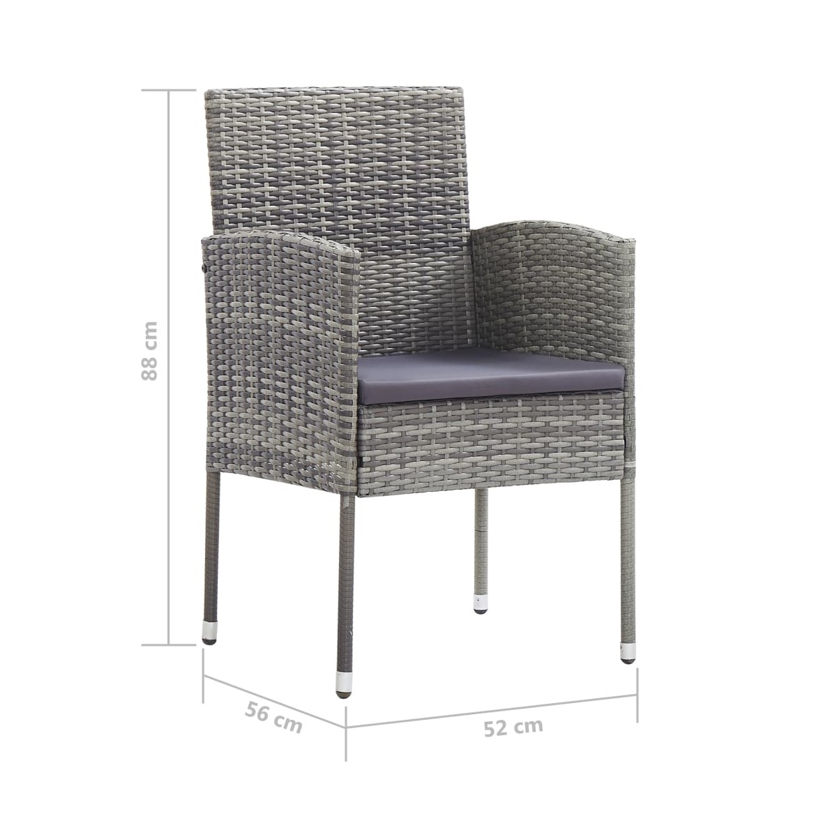 - Dimensiones de las sillas: 52 x 56 x 88 cm (ancho x profundo x alto)