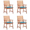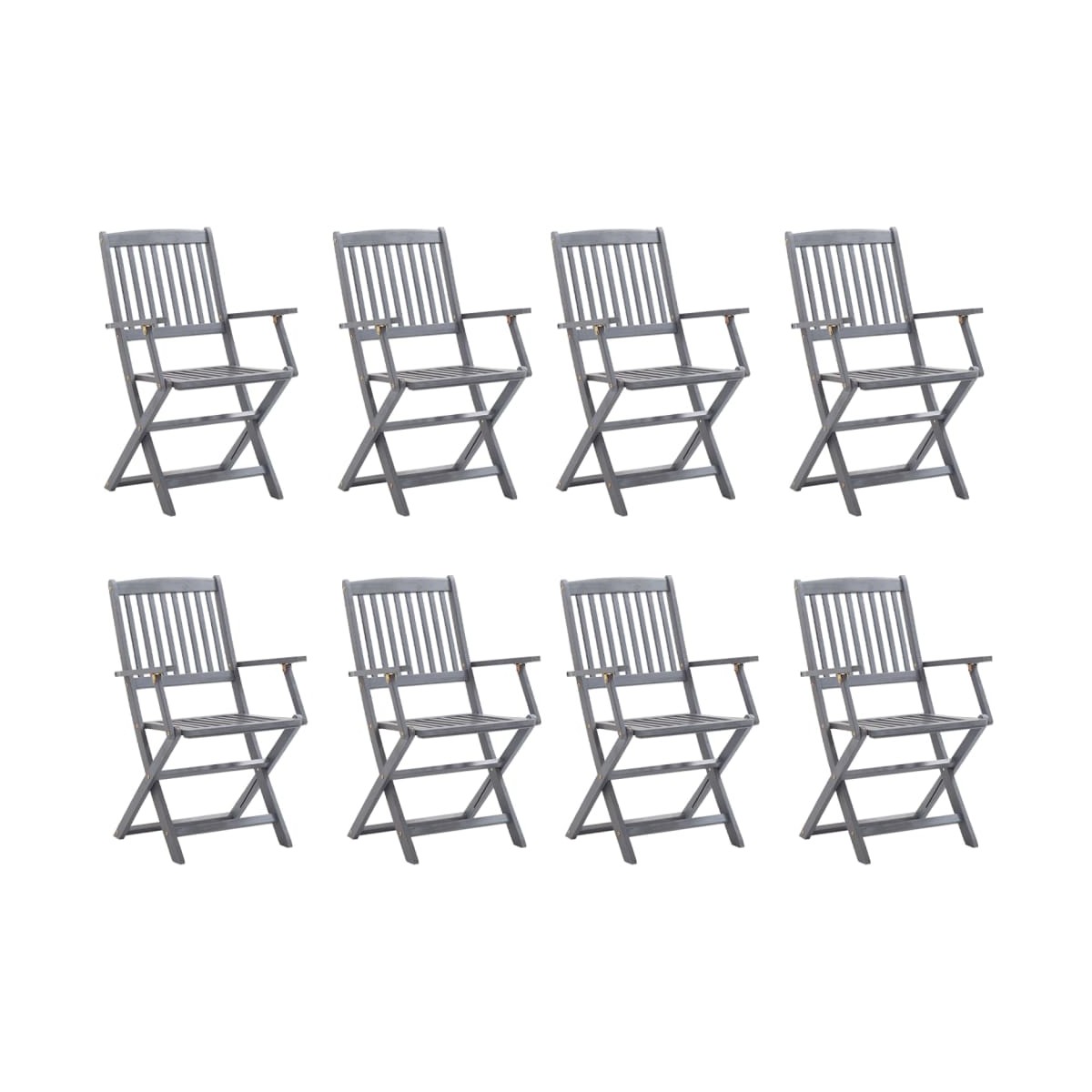 Este moderno juego de sillas de comedor de madera con cojines da un toque de estilo natural al jardín, la terraza o el patio. Este juego de sillas plegables es una gran opción para comer. Estas sillas de comedor están hechas de madera maciza de acacia, una madera dura tropical, por lo que son resistentes a la intemperie y muy duraderas. La madera maciza de acacia posee la fuerza para soportar pesos y para aguantar el desgaste y el paso del tiempo. La superficie en gris deslavado se limpia fácilmente con un paño húmedo. Las sillas se pueden plegar para ahorrar espacio cuando no se usen. Además, los cojines incluidos proporcionan un plus de comodidad mientras descansas o comes. Cada cojín cuenta con dos juegos de cuerdas para fijarlo firmemente en la silla. Nota: Para prolongar la vida útil de los muebles de exterior, te recomendamos que los limpies con regularidad y no los dejes al aire libre sin protección innecesariamente.Limpieza: Usa una solución de jabón suaveAlmacenamiento: Si es posible, guarda el producto en un lugar fresco y seco en el interior. Si el producto se almacena al aire libre, protégelo con una funda impermeable. Limpia y seca el exceso de agua o nieve de las superficies planas después de una lluvia o nevada. Permite la ventilación para evitar daños relacionados con la humedad.