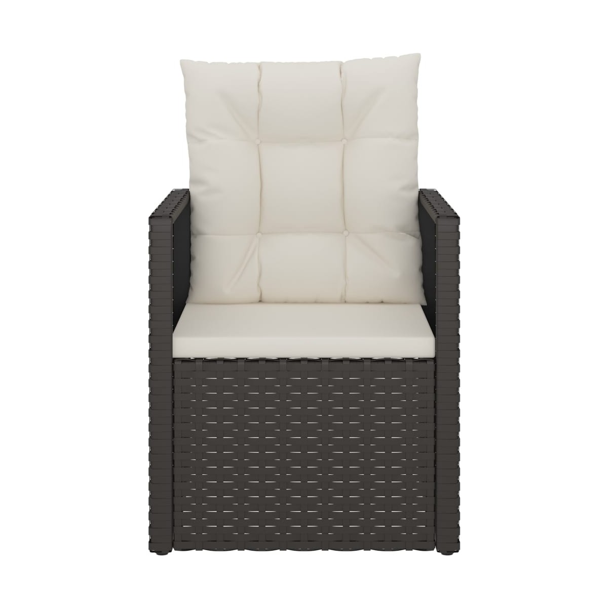 Este sillón de jardín con cojín es un aporte perfecto para el jardín y la terraza, y crea además una impresión duradera. Material duradero: El ratán PE, también conocido como ratán sintético, es resistente a la intemperie y fácil de limpiar. La parte exterior se mantiene hermosa durante mucho tiempo. Es más económico que otros materiales, además de ofrecer una gran calidad, comodidad y aspecto estético.Estructura estable: La estructura de acero con recubrimiento en polvo garantiza su robustez y estabilidad.Asiento confortable: Se incluyen cojines adicionales para tu comodidad. Nota:Cada producto viene con un manual de montaje en la caja para facilitar el montaje.Para prolongar la vida de tus muebles de exterior, te recomendamos que los protejas con una funda impermeable.