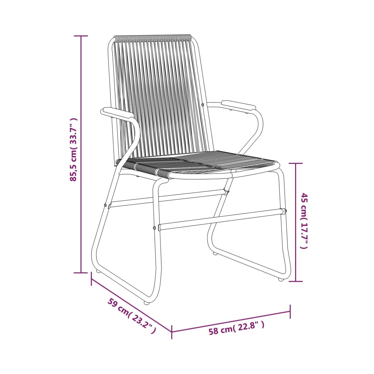 Estas sillas de jardín están diseñadas para ser un complemento llamativo en el jardín, el patio o la terraza. Material de PVC duradero: El ratán de PVC es una opción más resistente y duradera que el ratán natural. El PVC es conocido por sus cualidades resistentes a la intemperie, como la protección contra los rayos UV y la resistencia a la humedad.Estructura de acero: La estructura de acero con recubrimiento en polvo de la tumbona garantiza su solidez y estabilidad.Cómodo asiento: Con respaldo y reposabrazos, el asiento de jardín te permite recostarte cómodamente después de un largo día. Nota:Para asegurarte de que tus muebles de exterior se mantengan hermosos, recomendamos protegerlos con una funda impermeable.