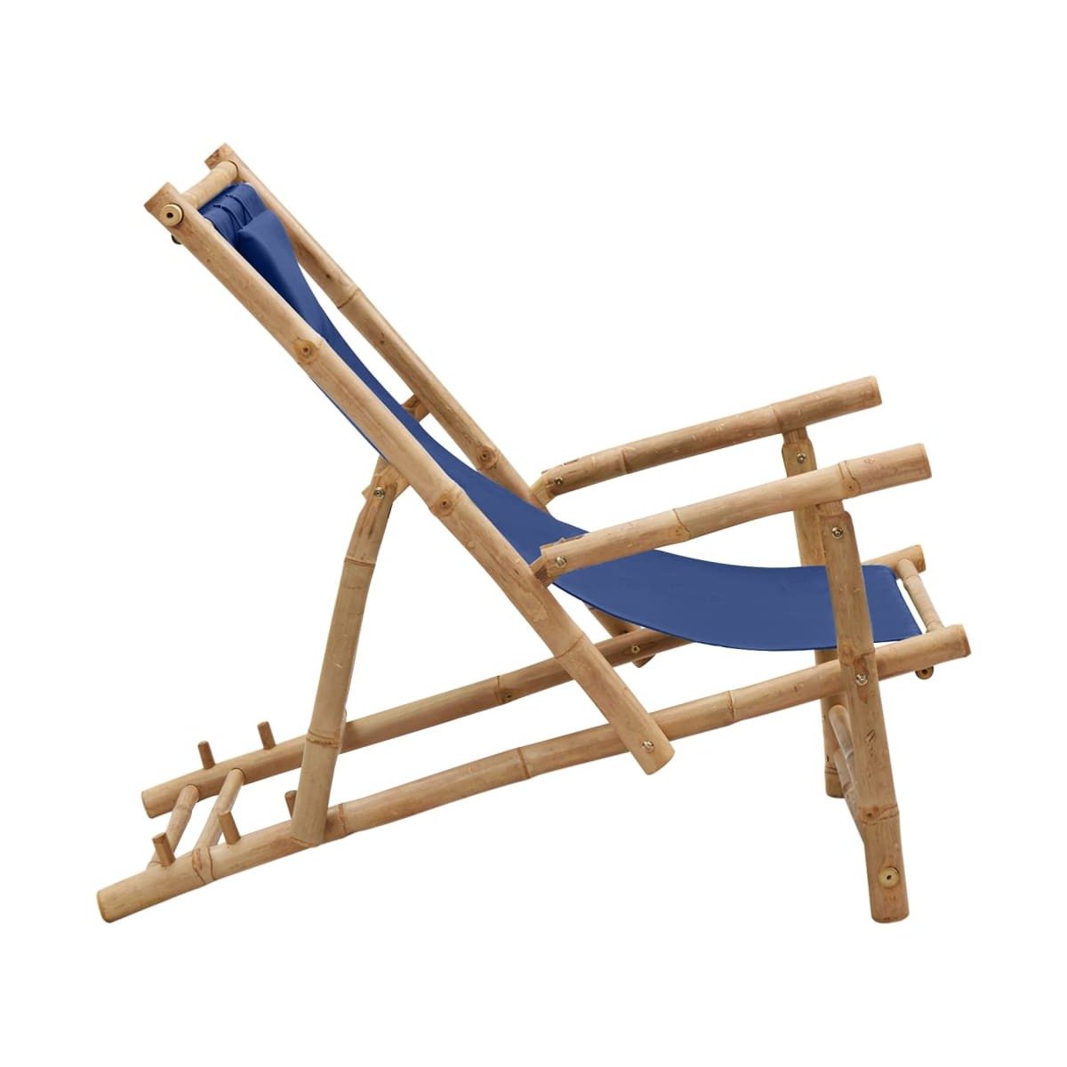 Esta silla de playa de bambú con reposabrazos es de altura regulable y está diseñada para ser un aporte fabuloso para el jardín, patio o la terraza. Material de primera calidad: La lona es un tejido plano muy usada por ser robusta, impermeable, ligera y resistente. Además, tiene un tejido mas apretado que la mayoría de las telas, lo que la hace más rígida y duradera.Estructura estable: La estructura de la silla está hecha de bambú, que es muy duradera. El material no cambia de color durante mucho tiempo y evita que la silla de playa se agriete y se deforme.Diseño plegable: La silla de playa puede doblarse para ahorrar espacio cuando no se use.Respaldo regulable: Gracias al respaldo regulable, la silla de jardín de bambú puede ser regulada en 3 posiciones. Así, puedes disfrutar de la máxima comodidad. Nota:Para prolongar la vida de tus muebles de exterior, te recomendamos que los protejas con una funda impermeable.