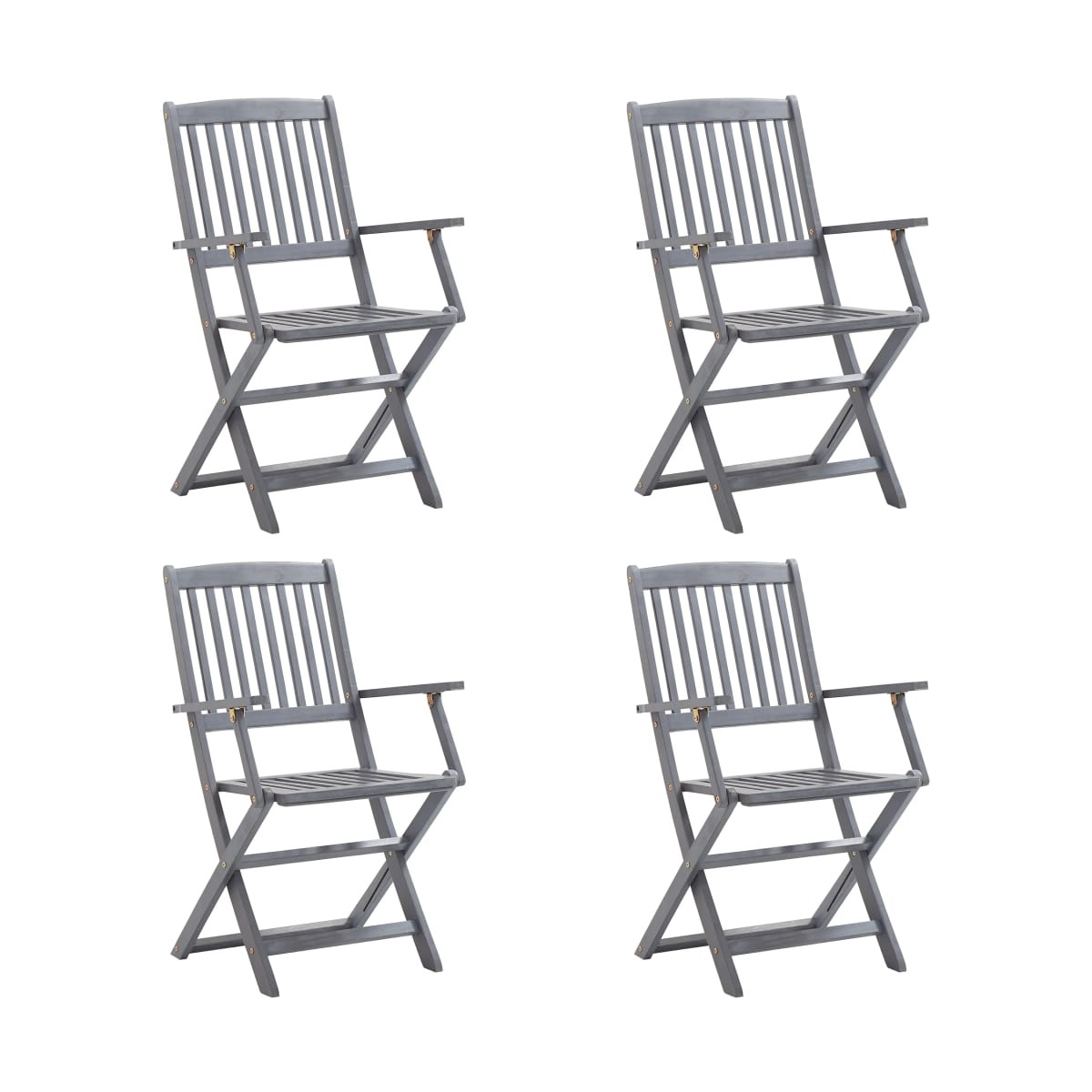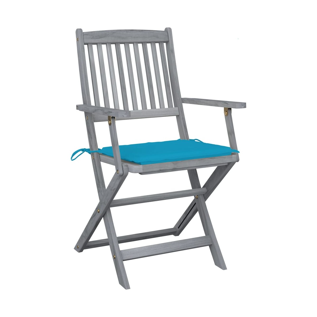 Este moderno juego de sillas de comedor de madera con cojines da un toque de estilo natural al jardín, la terraza o el patio. Este juego de sillas plegables es una gran opción para comer. Estas sillas de comedor están hechas de madera maciza de acacia, una madera dura tropical, por lo que son resistentes a la intemperie y muy duraderas. La madera maciza de acacia posee la fuerza para soportar pesos y para aguantar el desgaste y el paso del tiempo. La superficie en gris deslavado se limpia fácilmente con un paño húmedo. Las sillas se pueden plegar para ahorrar espacio cuando no se usen. Además, los cojines incluidos proporcionan un plus de comodidad mientras descansas o comes. Cada cojín cuenta con dos juegos de cuerdas para fijarlo firmemente en la silla.