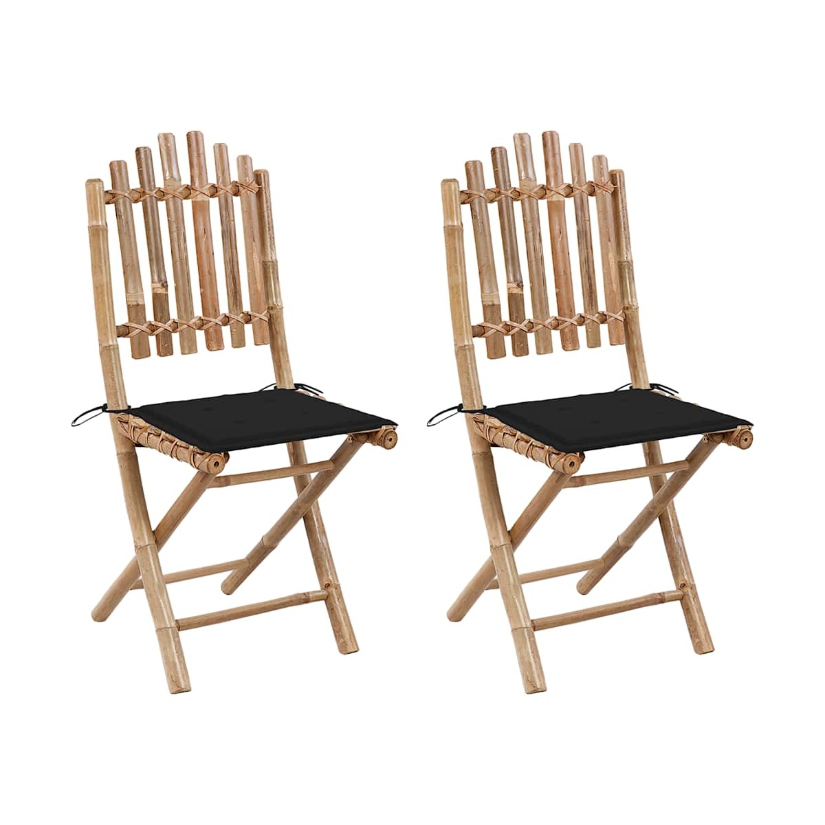 Este juego de 2 sillas de jardín con cojines será un elección genial para cenar al aire libre en el jardín o el patio. Hecha de bambú macizo, la silla de exterior es fuerte y duradera. También...
