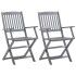 Este moderno juego de sillas de comedor de madera con cojines da un toque de estilo natural al jardín, la terraza o el patio. Este juego de sillas plegables es una gran opción para comer. Estas sillas de comedor están hechas de madera maciza de acacia, una madera dura tropical, por lo que son resistentes a la intemperie y muy duraderas. La madera maciza de acacia posee la fuerza para soportar pesos y para aguantar el desgaste y el paso del tiempo. La superficie en gris deslavado se limpia fácilmente con un paño húmedo. Las sillas se pueden plegar para ahorrar espacio cuando no se usen. Además, los cojines incluidos proporcionan un plus de comodidad mientras descansas o comes. Cada cojín cuenta con dos juegos de cuerdas para fijarlo firmemente en la silla.