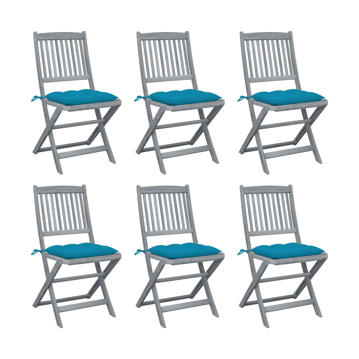 Este moderno juego de sillas de comedor de madera con cojines da un toque de estilo natural al jardín, la terraza o el patio. Este juego de sillas plegables es una gran opción para comer. Estas sillas de comedor están hechas de madera maciza de acacia, una madera dura tropical, por lo que son resistentes a la intemperie y muy duraderas. La madera maciza de acacia posee la fuerza para soportar pesos y para aguantar el desgaste y el paso del tiempo. La superficie en gris deslavado se limpia fácilmente con un paño húmedo. Las sillas se pueden plegar para ahorrar espacio cuando no se usen. Además, los cojines incluidos proporcionan un plus de comodidad mientras descansas o comes. Cada cojín cuenta con dos juegos de cuerdas para fijarlo firmemente en la silla.