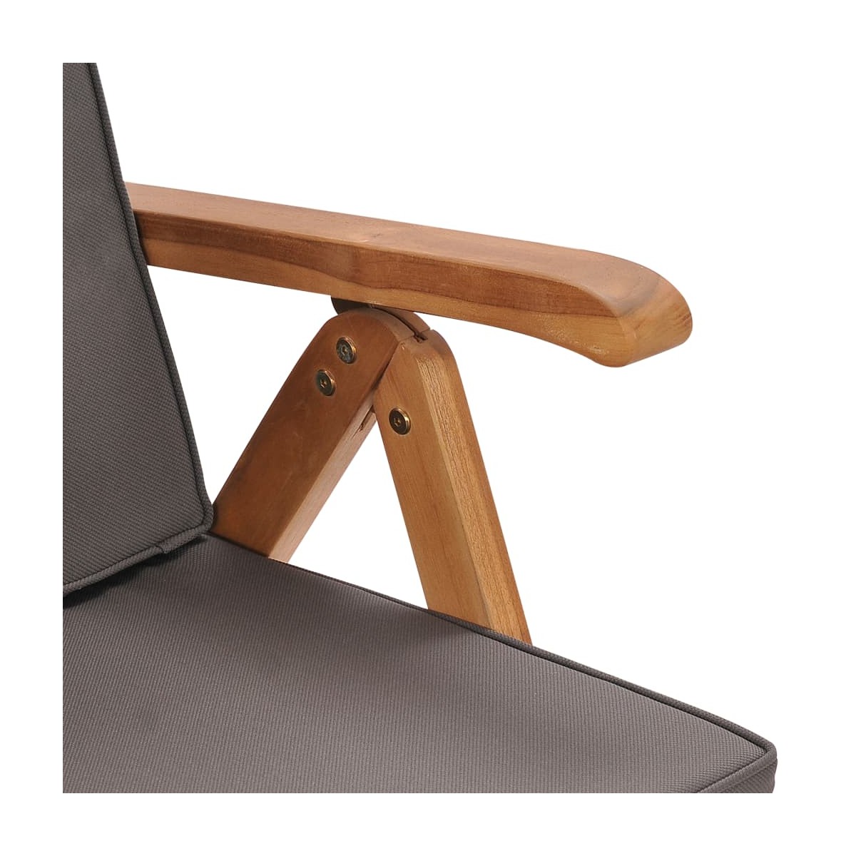 Mejora la comodidad del espacio al aire libre de la casa con este lujoso juego de sillas de jardín de madera. ¡Son ideales para charlar con familiares y amigos o simplemente para disfrutar tranquilamente tomando el sol! Construido con madera de teca dura muy duradera, este mueble de teca ha sido curado, secado al horno y lijado fino para darle un aspecto muy suave. La madera de teca es conocida por su excepcional fuerza y resistencia a la intemperie, por lo que es mucho más adecuada para muebles de jardín que cualquier otro tipo de madera. La madera de teca es la elección perfecta si quieres un mueble de jardín duradero. La madera de teca extragruesa y resistente garantiza una gran estabilidad. El asiento de listones, el reposabrazos curvado y el respaldo se adaptan al cuerpo. Los respaldos de las sillas son ajustables en 5 posiciones, para que siempre puedas encontrar las posturas más cómodas. Además, el mullido cojín del asiento y el respaldo proporcionan una mayor comodidad. La funda del cojín es extraíble para facilitar su lavado. Cuando no se utiliza, se puede plegar para ahorrar espacio.