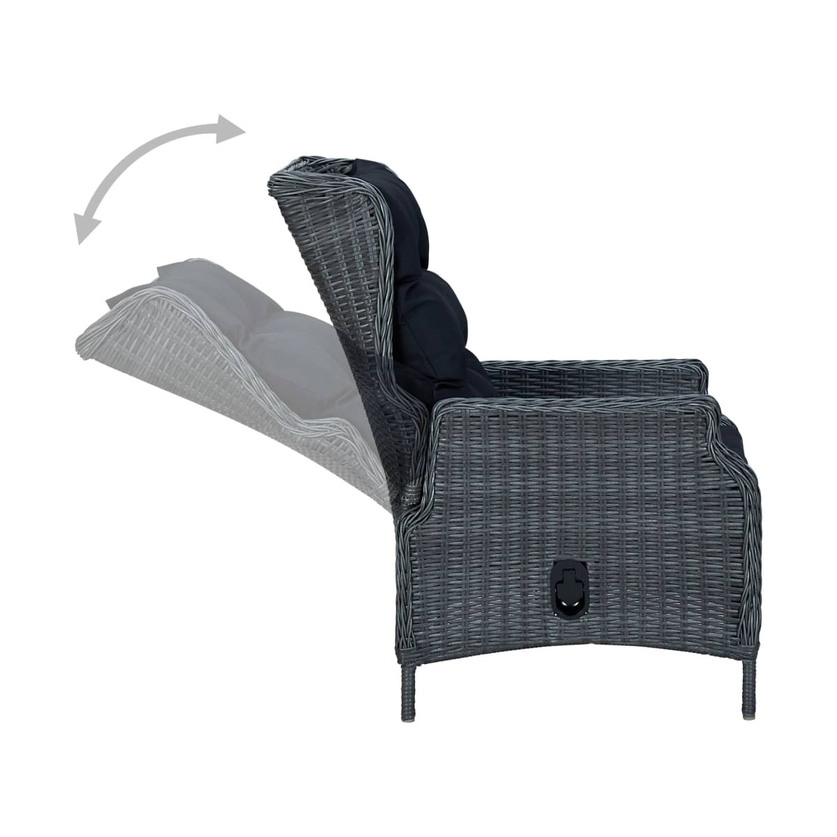 Esta cómoda silla de jardín reclinable es una excelente opción para charlar con familiares y amigos o simplemente disfrutar tomando el sol en tu patio o jardín. Este sillón reclinable de exterior, con una estructura de acero con recubrimiento en polvo recubierto de ratán PE redondo, es robusto y fácil de limpiar. Los cojines acolchados gruesos añaden comodidad adicional en tu tiempo de descanso. La funda de cojín está equipada con cremallera, extraíble y lavable. Gracias al mecanismo de elevación de gas, el respaldo también es ajustable para adaptarse a más posiciones. Al tocar el botón en el lateral, el respaldo puede reclinarse, para una cómoda posición reclinada. Además, la silla de jardín es fácil de mover con su construcción ligera. Nota importante: Recomendamos cubrir la silla durante la lluvia, la nieve y las heladas para que sea más duradero.