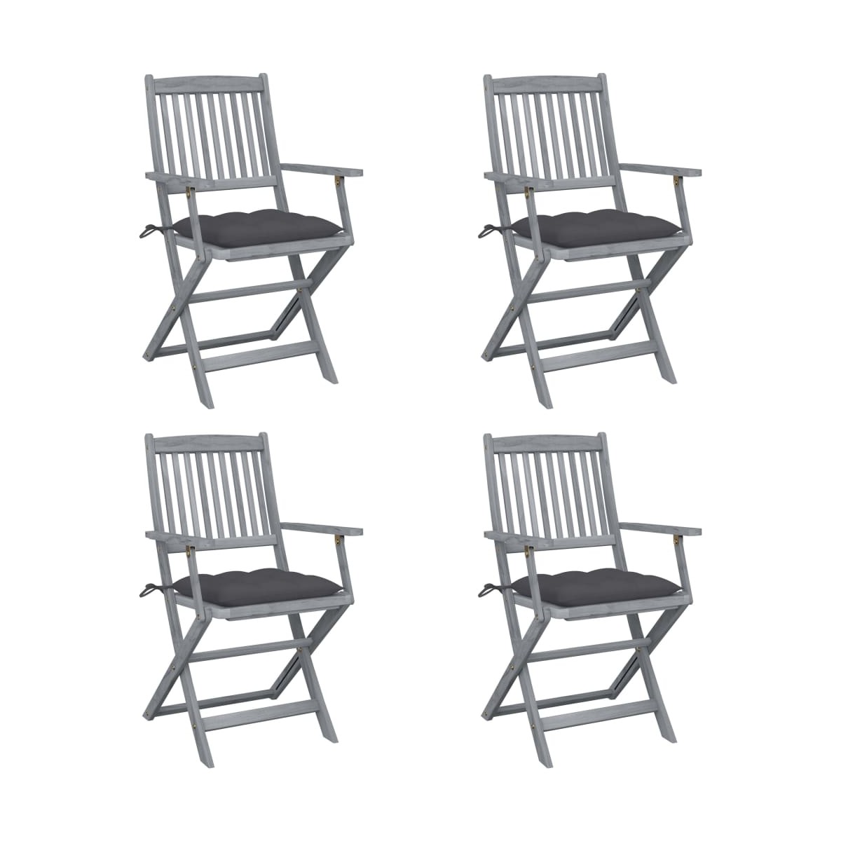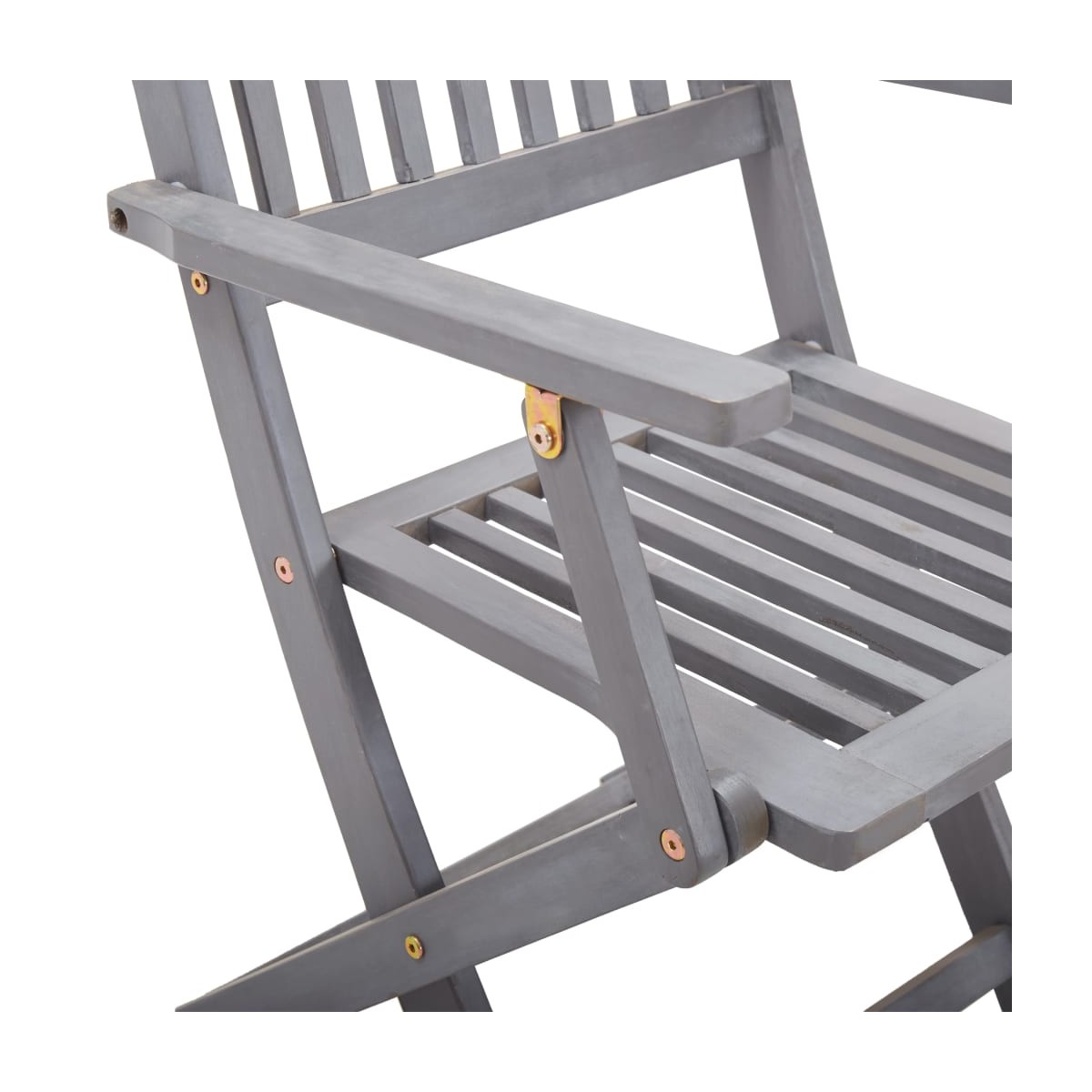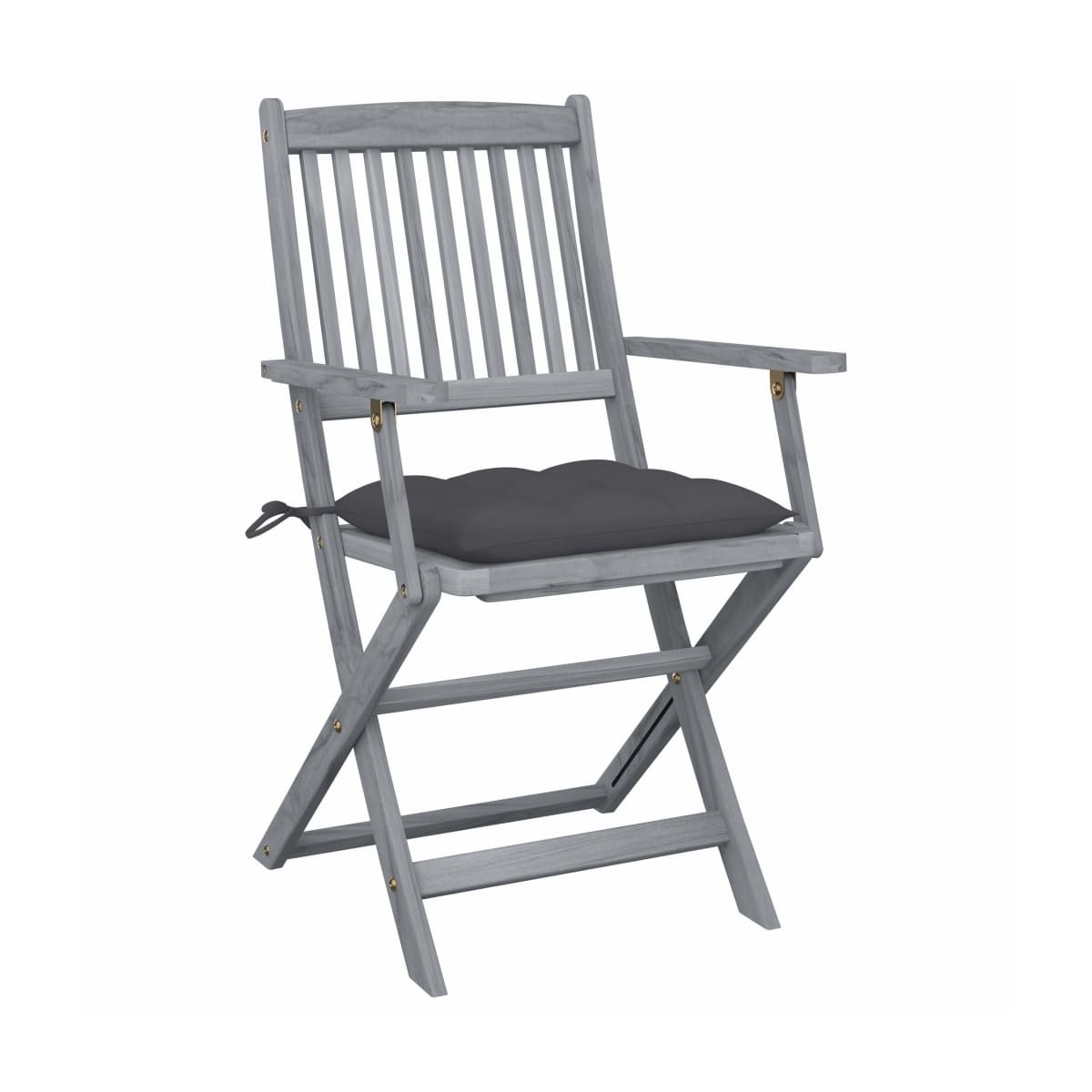 Este moderno juego de sillas de comedor de madera con cojines da un toque de estilo natural al jardín, la terraza o el patio. Este juego de sillas plegables es una gran opción para comer. Estas sillas de comedor están hechas de madera maciza de acacia, una madera dura tropical, por lo que son resistentes a la intemperie y muy duraderas. La madera maciza de acacia posee la fuerza para soportar pesos y para aguantar el desgaste y el paso del tiempo. La superficie en gris deslavado se limpia fácilmente con un paño húmedo. Las sillas se pueden plegar para ahorrar espacio cuando no se usen. Además, los cojines incluidos proporcionan un plus de comodidad mientras descansas o comes. Cada cojín cuenta con dos juegos de cuerdas para fijarlo firmemente en la silla.