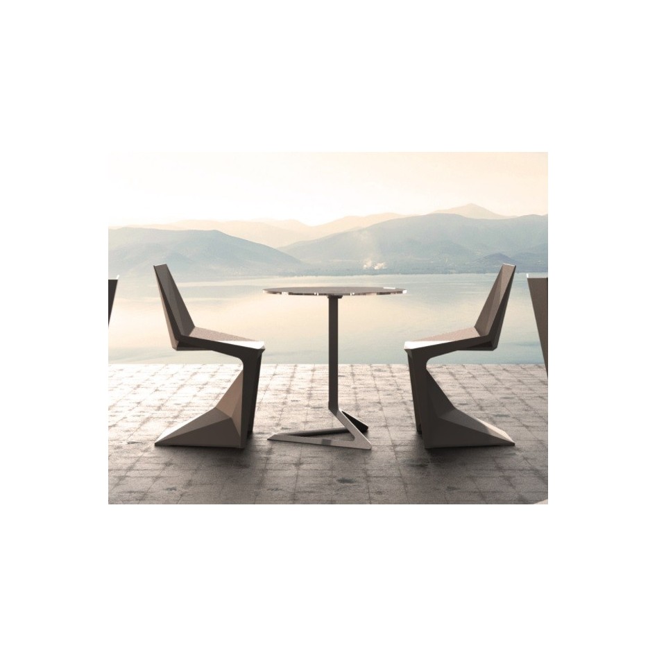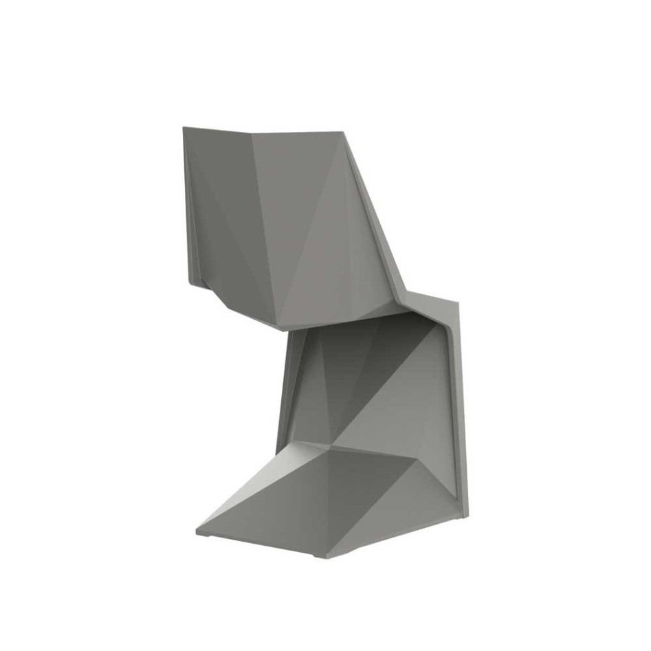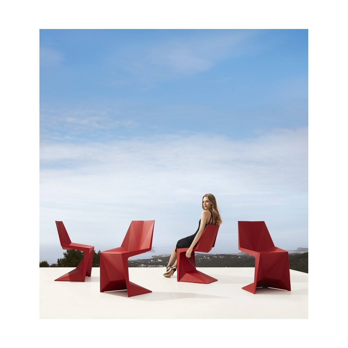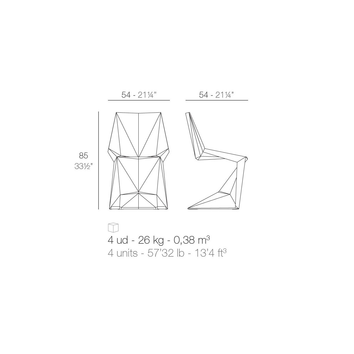 Ahora esta colección la conforman la silla y el sillón. Inspirada en una pieza anterior de Vondom, la silla Vertex. Cuenta con una forma estructural única, angulada y facetada, que es posible gracias a su despliegue de moldeo por inyección. El peso se distribuye uniformemente debido a su forma inteligente.