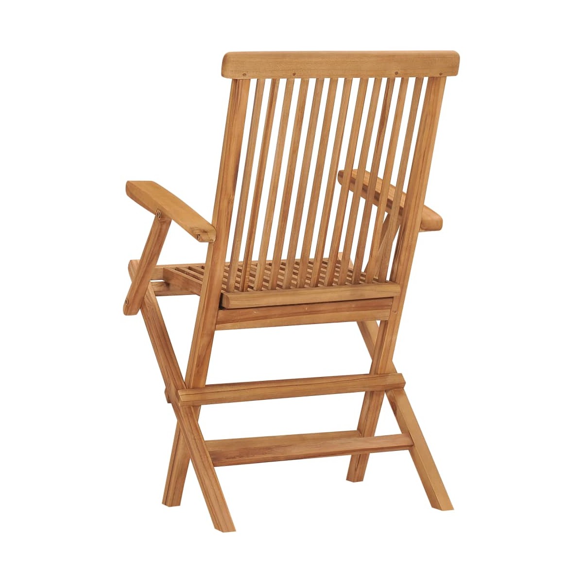 Este juego de sillas de jardín, con un diseño simple pero elegante, te brinda una cómoda experiencia de asiento. Hecha de madera dura de teca muy duradera, ha sido secada al horno y lijada finamente para darle un aspecto muy liso. La madera de teca es conocida por su excepcional robustez y resistencia a la intemperie, lo que la hace mucho más adecuada para muebles de jardín que cualquier otro tipo de madera. La madera de teca es la elección perfecta si quieres comprar un mueble de jardín duradero. Cuando no se use, puedes plegarla para ahorrar espacio. Nota: Para prolongar la vida útil de los muebles de exterior, te recomendamos que los limpies con regularidad y no los dejes al aire libre sin protección innecesariamente.Limpieza: Usar una solución de jabón suaveAlmacenamiento: Si es posible, guarda el producto en un lugar fresco y seco en el interior. Si el producto se almacena al aire libre, protégelo con una funda impermeable. Limpia y seca el exceso de agua o nieve de las superficies planas después de una lluvia o nevada. Permite la ventilación para evitar daños relacionados con la humedad.