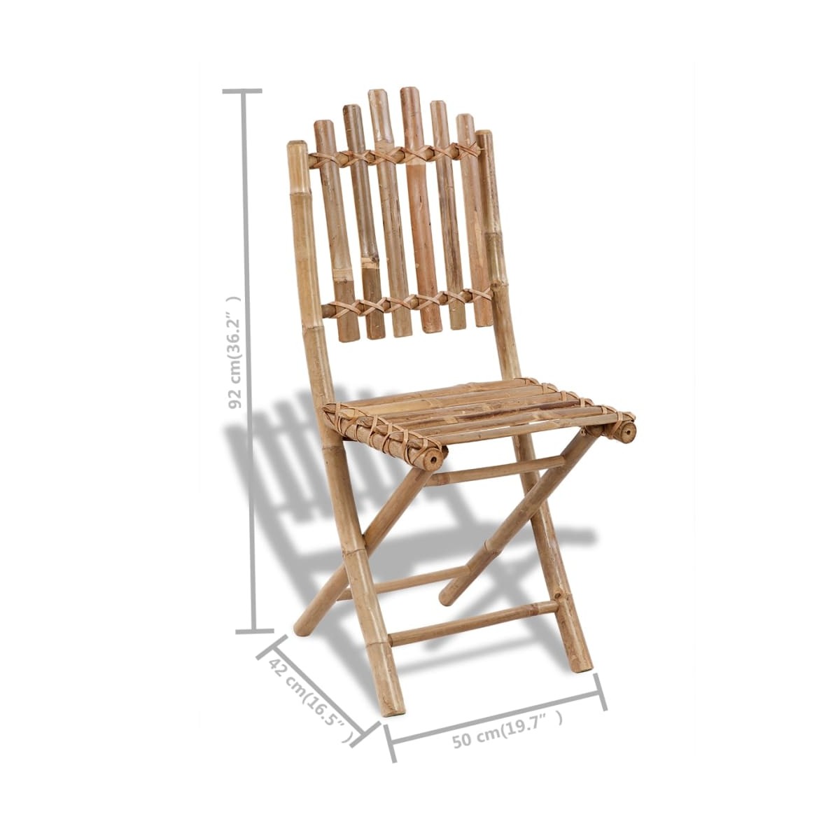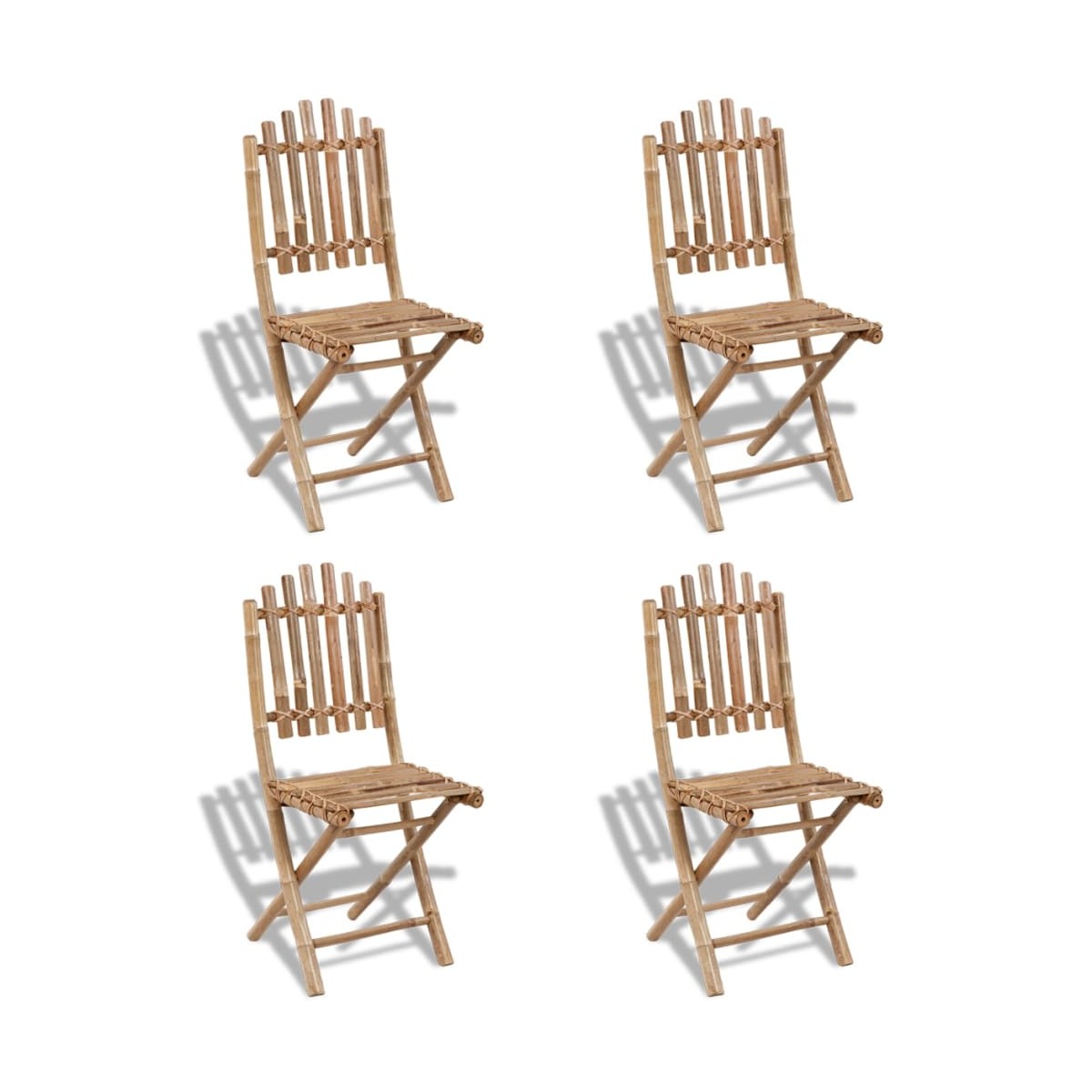 Este juego de 4 sillas de comedor será una excelente opción para cenar al aire libre en el jardín o el patio. Hecho de bambú robusto, el juego de comedor es fuerte y duradero. También es resistente a la intemperie, impermeable y fácil de limpiar con un paño húmedo. Las sillas son plegables para ahorrar espacio de almacenamiento cuando no están en uso. La entrega incluye 4 sillas plegables de bambú. Nota: Para prolongar la vida útil de los muebles de exterior, te recomendamos que los limpies con regularidad y no los dejes al aire libre sin protección innecesariamente.Limpieza: Usa una solución de jabón suaveAlmacenamiento: Si es posible, guarda el producto en un lugar fresco y seco en el interior. Si el producto se almacena al aire libre, protégelo con una funda impermeable. Limpia y seca el exceso de agua o nieve de las superficies planas después de una lluvia o nevada. Permite la ventilación para evitar daños relacionados con la humedad.