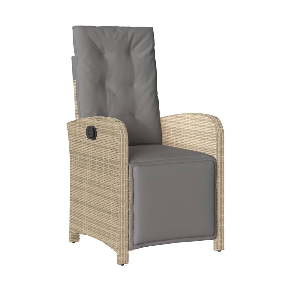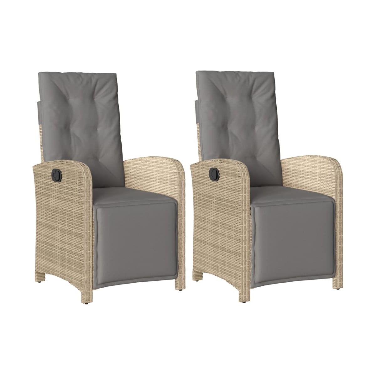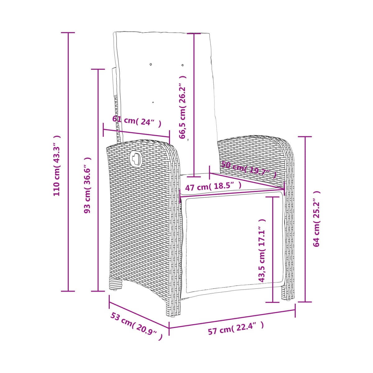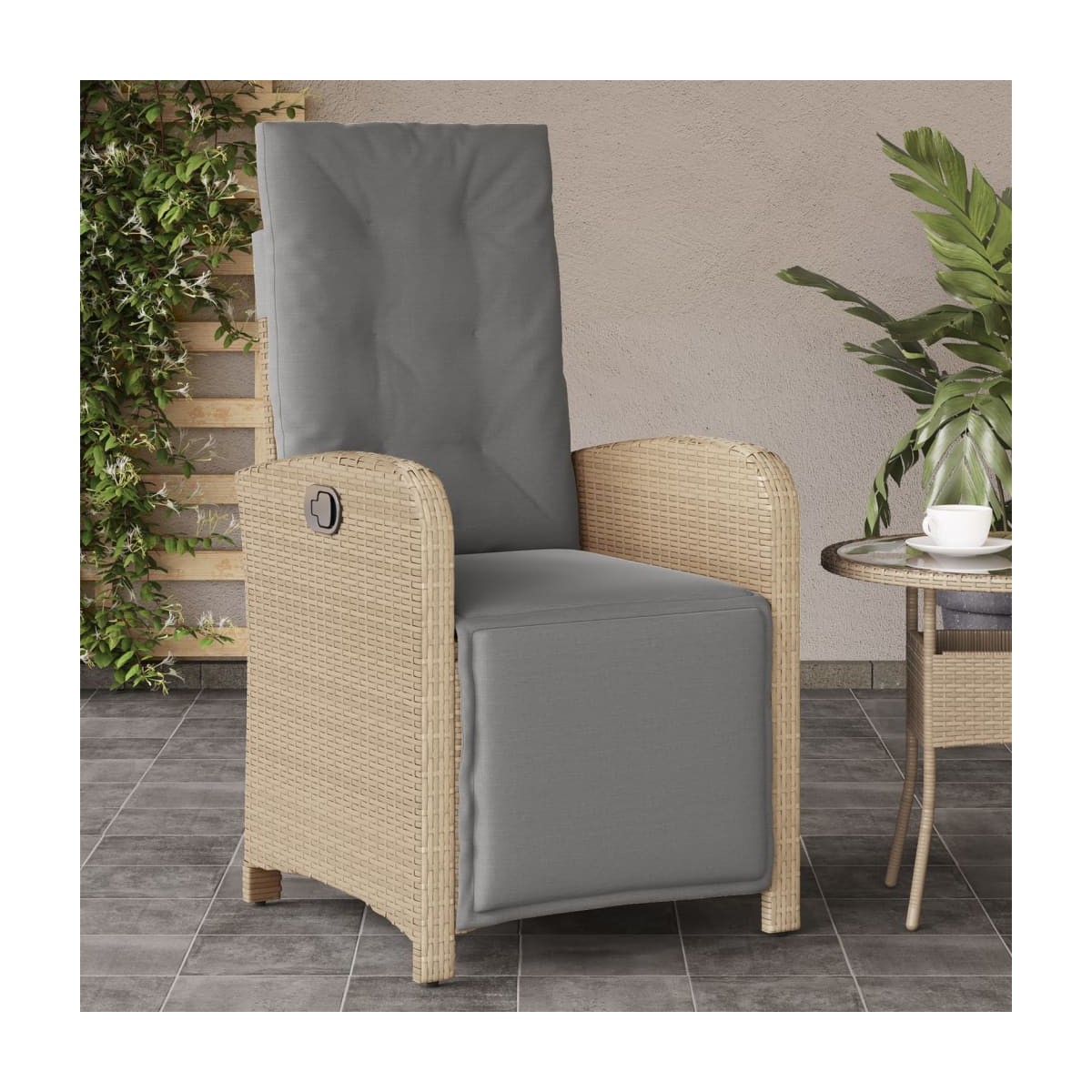 ¡Relájate y disfruta del aire libre en estas cómodas sillas de jardín reclinables! Material duradero: El ratán de PE, también conocido como ratán sintético, es un material sintético resistente y de bajo mantenimiento que se parece al ratán natural. Es ligero, fácil de limpiar y se usa comúnmente para muebles de exterior debido a su durabilidad y propiedades resistentes a la intemperie.Respaldo y reposapiés ajustables: este asiento de jardín tiene un asa. Puedes ajustar el respaldo y el reposapiés a cualquier posición tirando del asa y devolverlos rápidamente a sus posiciones originales. Experiencia de asiento cómoda: Estos muebles de exterior, completos con cojines acolchados gruesos, ofrecen una experiencia de asiento cómoda.Funda desenfundable y lavable: Estos cojines de asiento cuentan con fundas desenfundables para facilitar el lavado y mantenimiento.Estructura robusta y estable: La estructura de acero con recubrimiento en polvo garantiza que el mueble de jardín sea resistente y estable para usarlo a diario al aire libre. Información útil:Para asegurarte de que tus muebles de exterior se mantengan hermosos, recomendamos protegerlos con una funda impermeable.