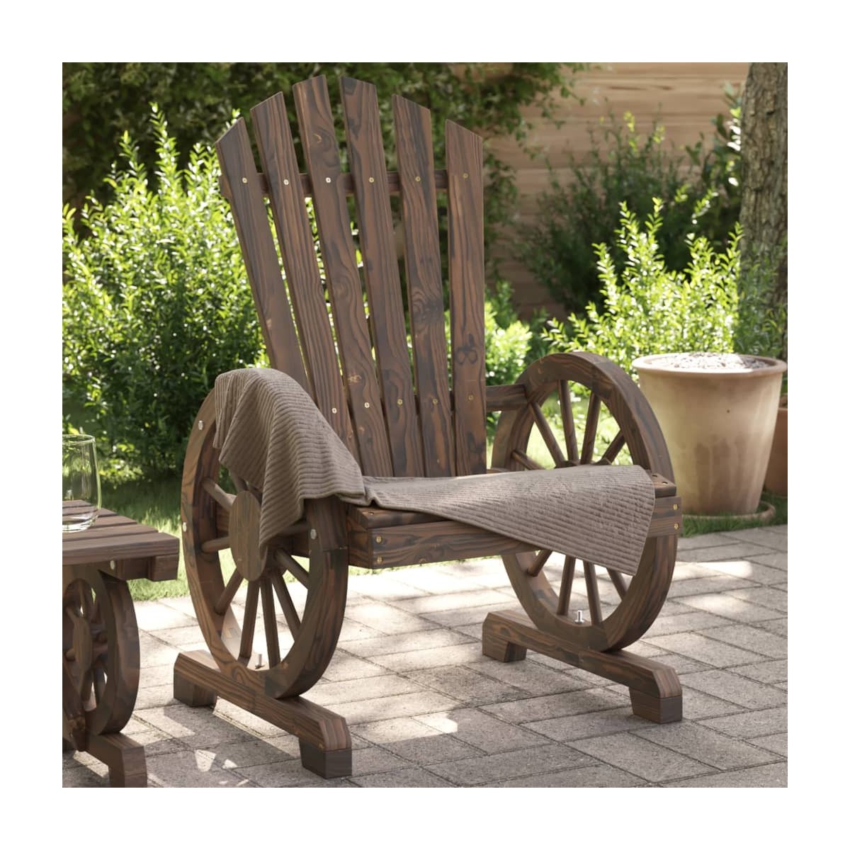 Esta silla de jardín Adirondack es perfecta para aquellos que quieren disfrutar del aire libre con estilo y comodidad. Madera maciza de abeto: La madera maciza de abeto es un material bonito y duradero que mantiene su integridad incluso cuando se expone a la humedad. No se seca ni se deforma, lo que la convierte en una opción fiable.Asiento cómodo: El sillón de jardín cuenta con un asiento ergonómico y un respaldo en ángulo para una comodidad óptima al sentarse. Además, los reposabrazos en forma de rueda de carreta proporcionan un espacio cómodo para descansar los brazos.Amplios usos: La silla de jardín es una solución perfecta para sentarse en el jardín, patio, césped, terrazas, al lado de piscinas, balcones y otros espacios al aire libre. Información útil:Para asegurarte de que tus muebles de exterior se mantengan hermosos, recomendamos protegerlos con una funda impermeable.