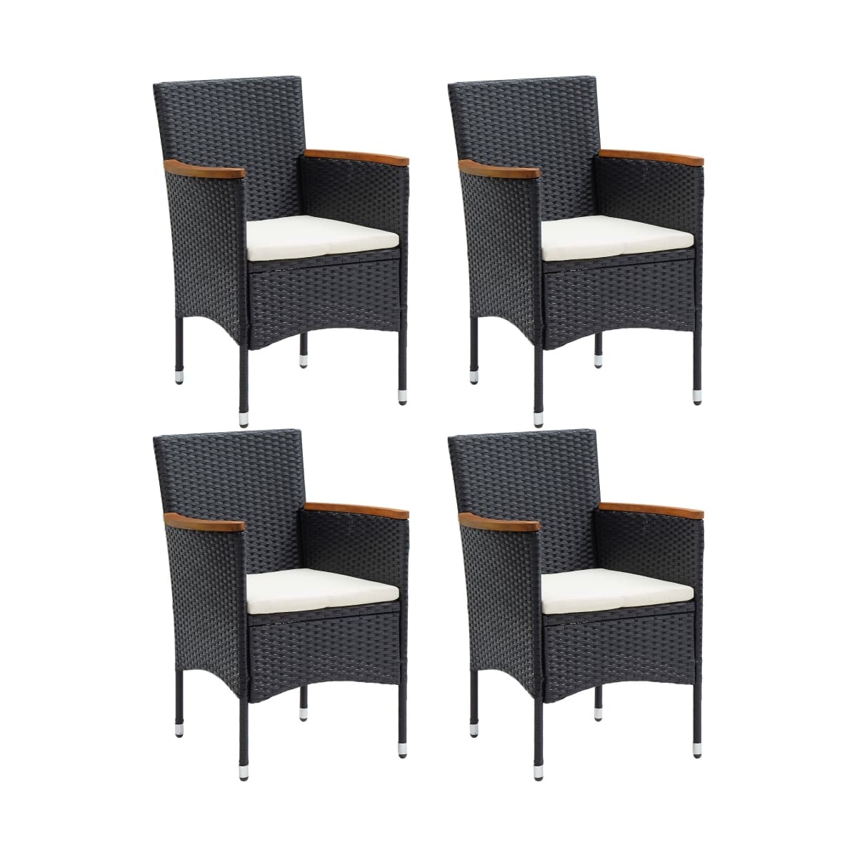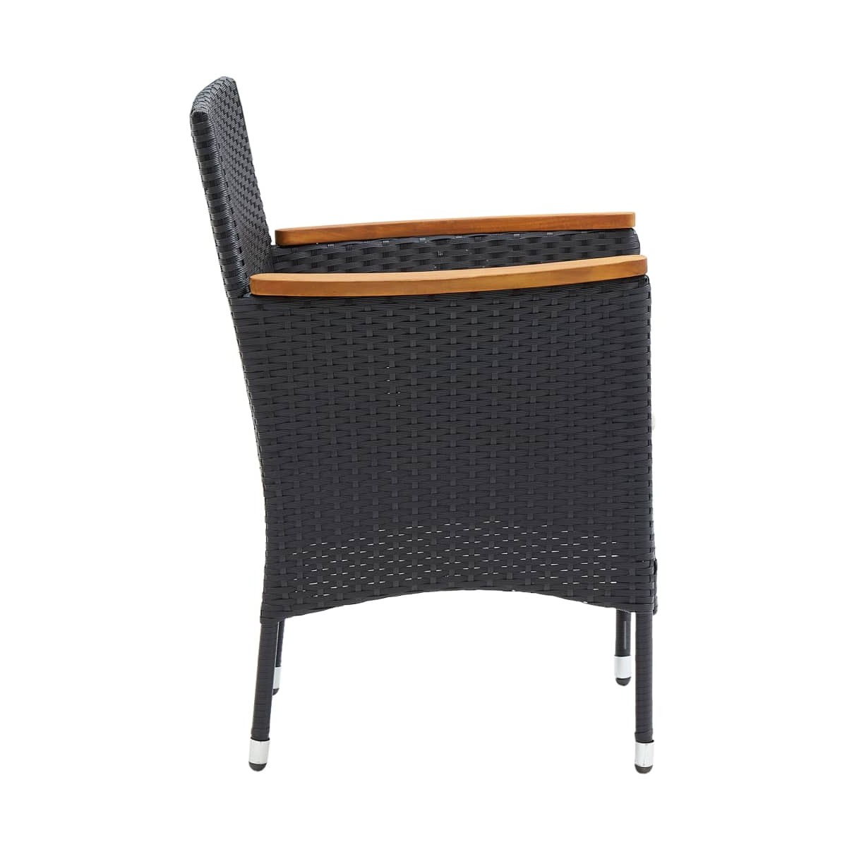 Este juego de sillas de comedor de jardín está diseñado para destacar y agregará un toque de estilo moderno al paisaje al aire libre, como jardines, balcones, patios, etc. Con estructura robusta de acero con recubrimiento de ratán PE resistente a la intemperie, este conjunto de silla de jardín es resistente al óxido y al moho, y proporciona años de relajación de calidad. Este conjunto de sillas de exterior, diseñado con respaldo curvo y reposabrazos, presenta una forma más ergonómica para máxima comodidad. Los reposabrazos están bellamente decorados con madera de acacia maciza con un acabado de aceite natural, lo que aporta una sensación de encanto rústico. Además, los cojines acolchados gruesos brindan la máxima comodidad.
