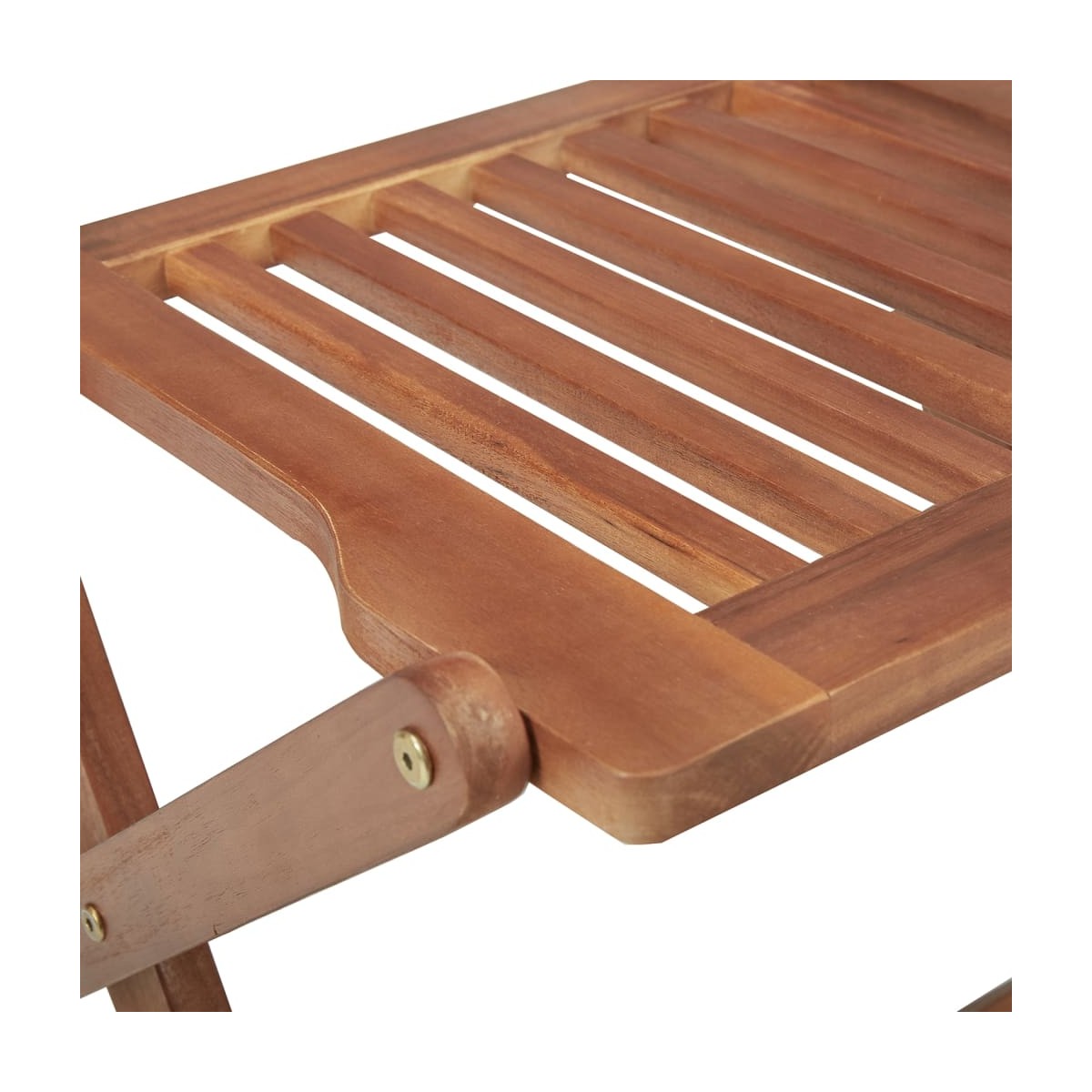 Este moderno juego de sillas de comedor de madera dará un toque de estilo natural a tu jardín, terraza o patio. Este juego de sillas plegables será una gran opción para cenar al aire libre. Estas sillas de comedor están hechas de madera de acacia de calidad suprema, una madera dura tropical, que es resistente a la intemperie y duradera durante muchos años. La superficie con acabado de aceite es fácil de limpiar con un paño húmedo. Las sillas se pueden plegar para ahorrar espacio cuando no se usen. Nota: Para prolongar la vida útil de los muebles de exterior, te recomendamos que los limpies con regularidad y no los dejes al aire libre sin protección innecesariamente.Limpieza: Usar una solución de jabón suaveAlmacenamiento: Si es posible, guarda el producto en un lugar fresco y seco en el interior. Si el producto se almacena al aire libre, protégelo con una funda impermeable. Limpia y seca el exceso de agua o nieve de las superficies planas después de una lluvia o nevada. Permite la ventilación para evitar daños relacionados con la humedad.