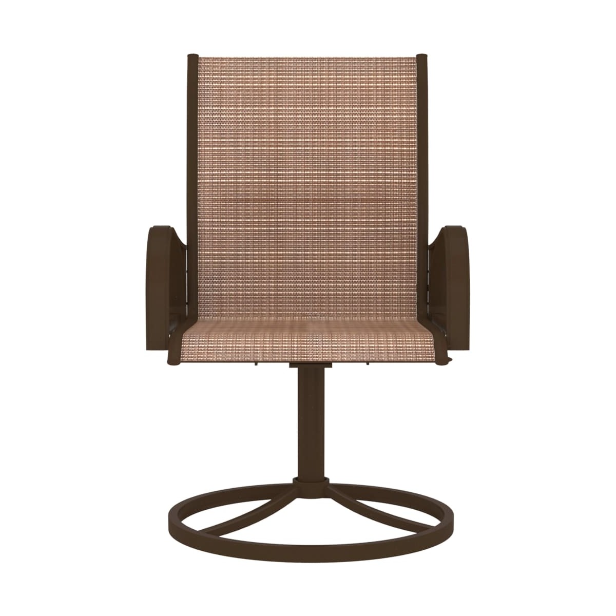 ¡Disfruta de una comida o una merienda perfectas con este par de sillas giratorias para los espacios al aire libre de tu casa! Estas sillas tienen una estructura de acero con recubrimiento en polvo, resistente al óxido y a la intemperie, con tela textilene transpirable, bien ventilada y de secado rápido. La base redonda que gira 360 grados, el respaldo ergonómico y los reposabrazos curvados te ofrecen una experiencia óptima y comodidad.