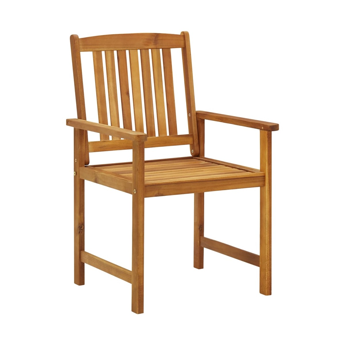 Agrega comodidad extra en tu jardín o patio con este juego de sillas de exterior de madera. ¡Es ideal para conversar con familiares y amigos o simplemente para disfrutar del relajante sol! Este juego de sillas de jardín está hecho de madera maciza de acacia con un acabado al aceite, que es una madera dura con vetas densas. La madera de acacia rugosa tiene fuerza para soportar el peso y también el desgaste del tiempo. Este juego de sillas de madera es estable, duradero y resistente a la intemperie. Además, la superficie con acabado de aceite hace que las sillas sean fáciles de limpiar con un paño húmedo. Nota: Para prolongar la vida útil de los muebles de exterior, te recomendamos que los limpies con regularidad y no los dejes al aire libre sin protección innecesariamente.Limpieza: Usar una solución de jabón suaveAlmacenamiento: Si es posible, guarda el producto en un lugar fresco y seco en el interior. Si el producto se almacena al aire libre, protégelo con una funda impermeable. Limpia y seca el exceso de agua o nieve de las superficies planas después de una lluvia o nevada. Permite la ventilación para evitar daños relacionados con la humedad.