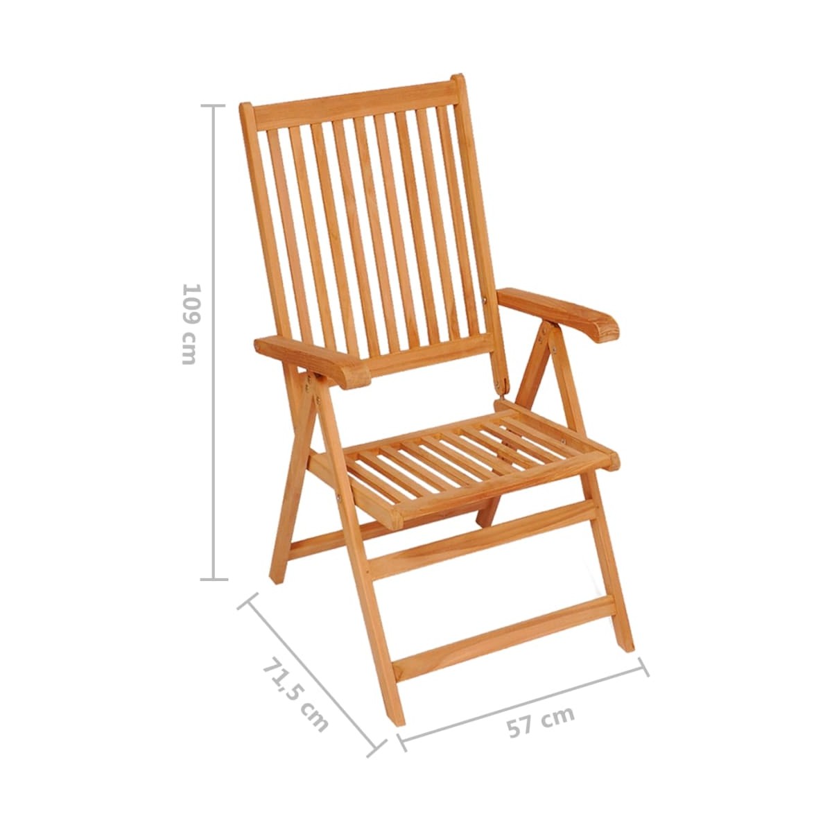 Este juego de sillas de jardín de madera es un excelente aporte para tu jardín o patio. Es ideal para relajarte, charlar con familiares y amigos o simplemente disfrutar del buen tiempo. Construidas con madera maciza de teca muy duradera, estos muebles de teca han sido secados al horno y lijados finamente para darles una apariencia muy lisa. La madera de teca es conocida por su excepcional robustez y resistencia a la intemperie, lo que la hace mucho más adecuada para muebles de jardín que cualquier otro tipo de madera. La madera de teca es la elección perfecta si quieres comprar un mueble de jardín duradero. El respaldo de la silla se puede ajustar en 7 posiciones de reclinado, para que siempre puedas encontrar la posición más cómoda. También es ligera, lo que facilita poder moverla. La silla de exterior también se puede plegar para ahorrar espacio cuando no la uses. El cojín incluido es más que un aporte práctico, también tiene una función decorativa.