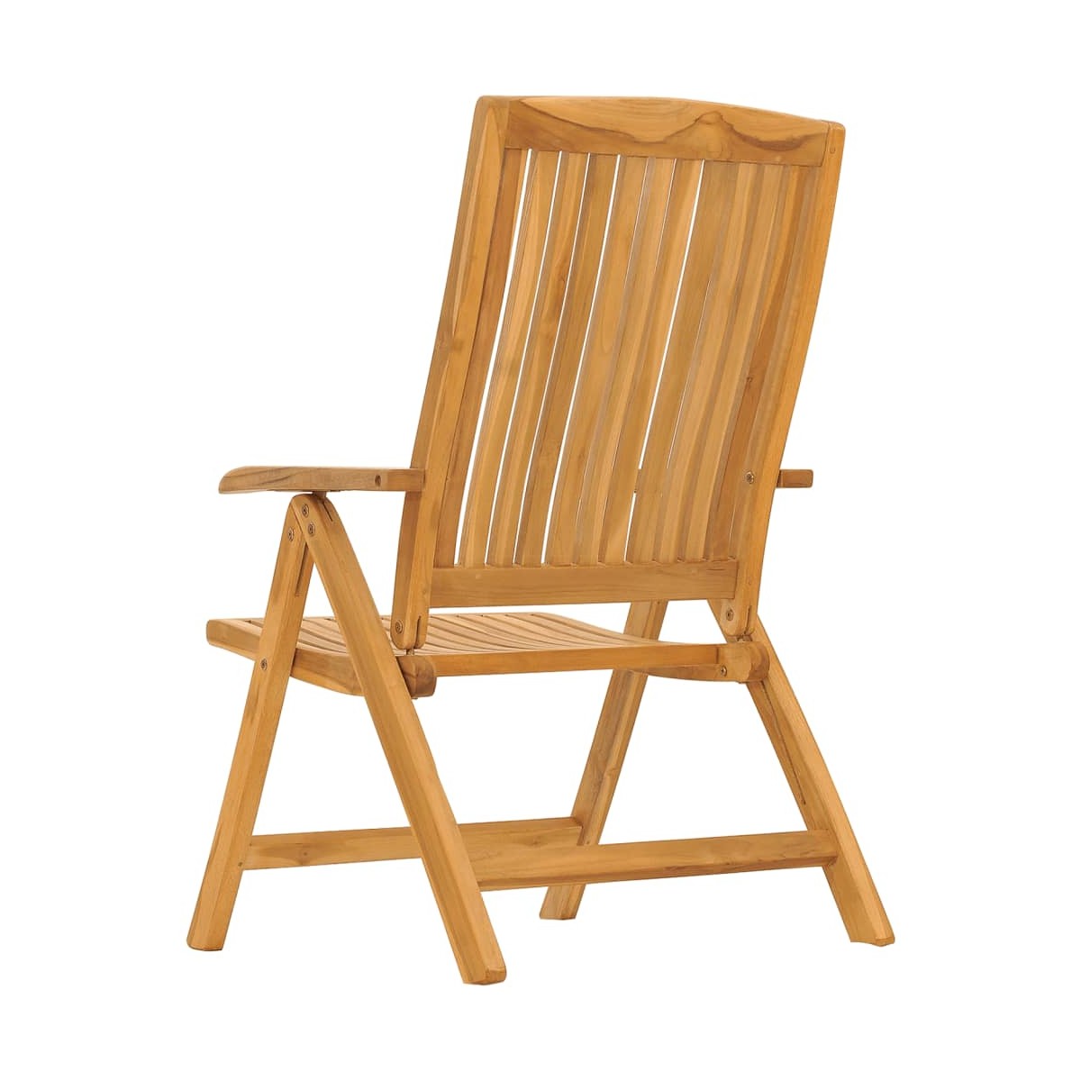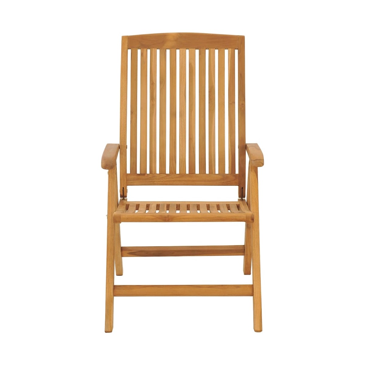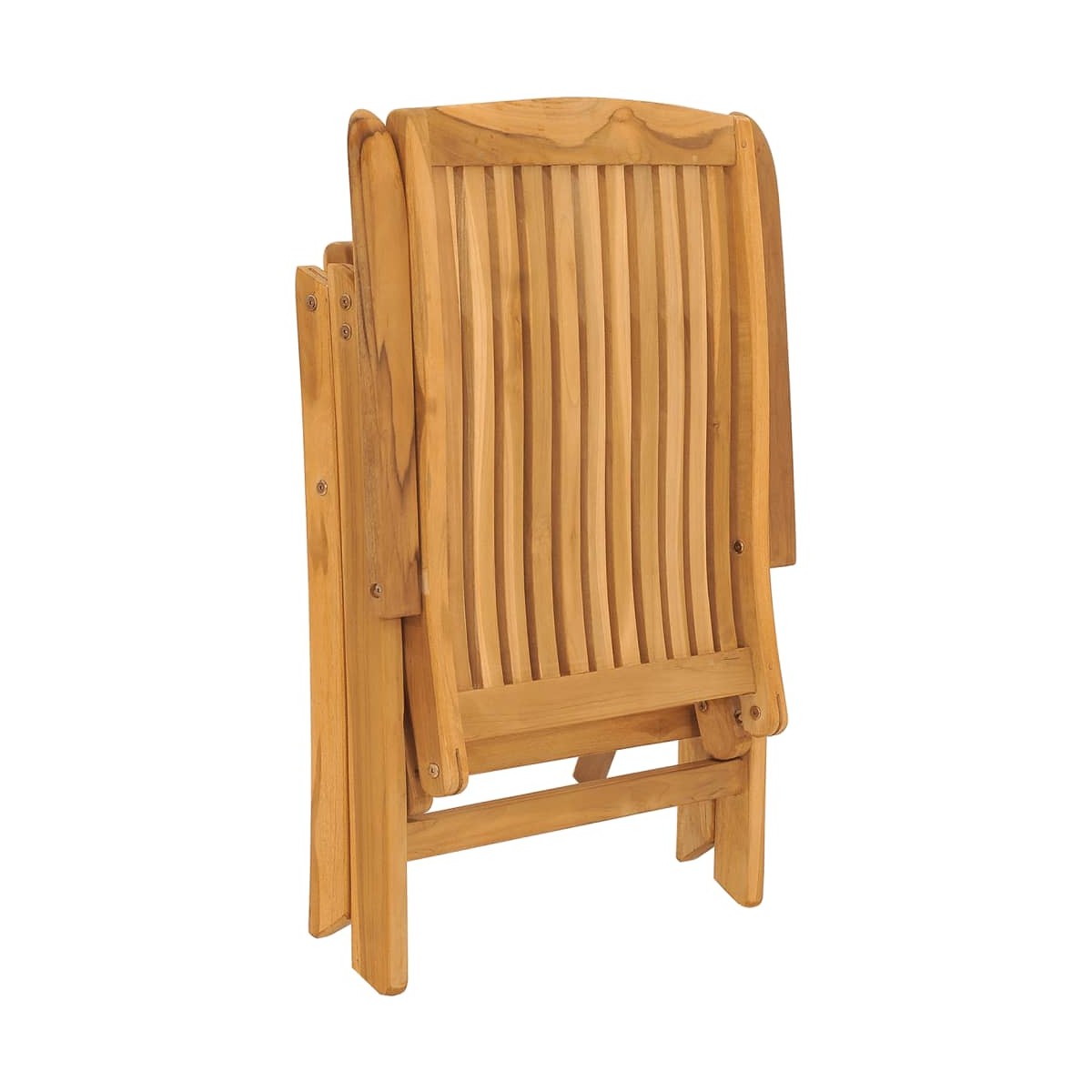 Mejora la comodidad del espacio al aire libre de la casa con estas clásicas sillas de jardín de madera. ¡Son ideales para charlar con familiares y amigos o simplemente disfrutar tranquilamente tomando el sol! Madera maciza de teca: La madera maciza de teca es un hermoso material natural. Ha sido curada, secada al horno y después lijada finamente para darle un aspecto muy suave. La madera de teca es conocida por su excepcional fuerza y resistencia a la intemperie.Respaldo regulable: Los respaldos de las sillas de jardín se pueden regular en 6 posiciones, para que siempre encuentres la postura más cómoda.Función plegable: El asiento de jardín es plegable, por lo que puedes plegarlo para ahorrar espacio cuando no se use.Asiento cómodo: La silla de exterior, con un asiento de listones, reposabrazos curvados y respaldo, se adapta al cuerpo y ofrece una comodidad óptima. Además, el cojín blando proporciona la comodidad definitiva.Cojín antideslizante: Las cuerdas cuidadosamente diseñadas y la correa trasera elástica facilitan la colocación del cojín a la silla y lo mantienen en su sitio de forma firme y segura. Información útil:Para asegurarte de que tus muebles de exterior se mantengan hermosos, recomendamos protegerlos con una funda impermeable.