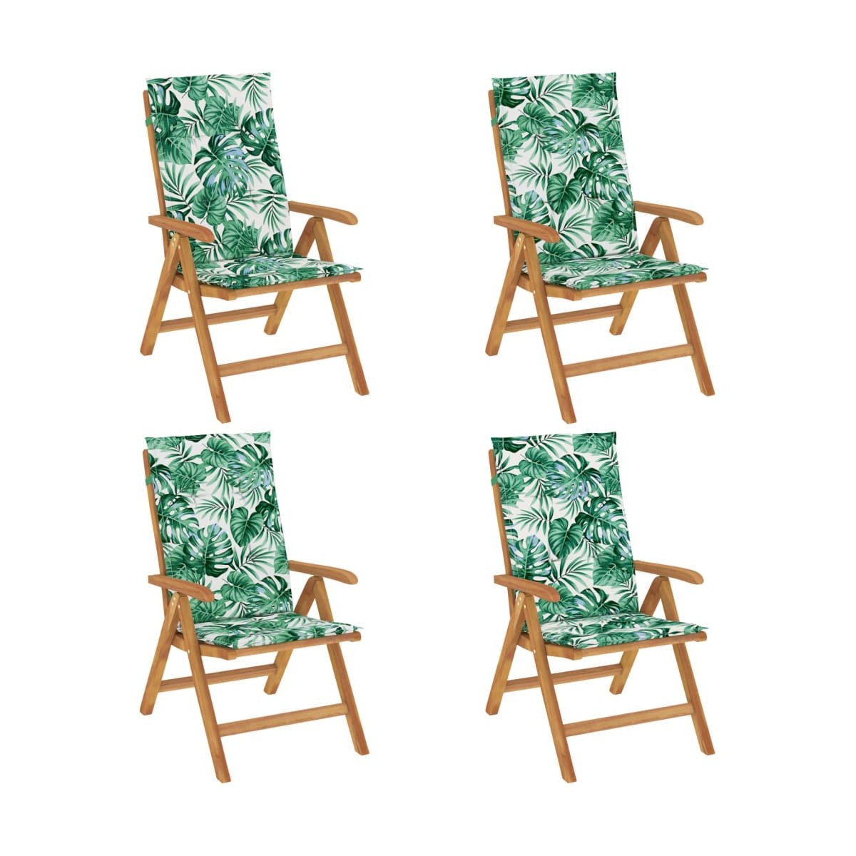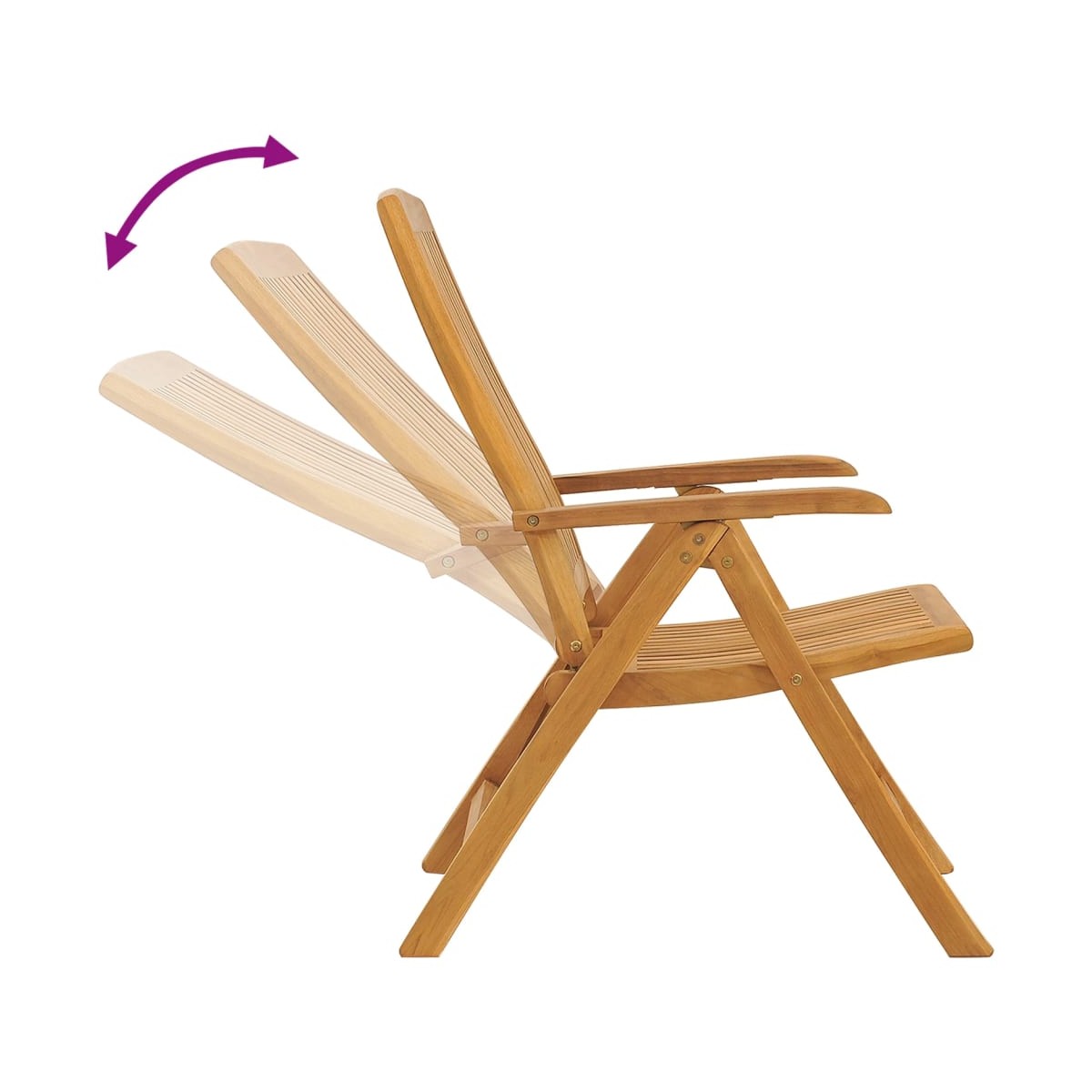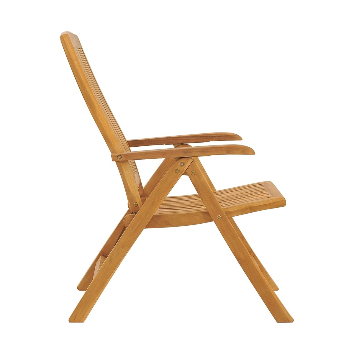 Mejora la comodidad del espacio al aire libre de la casa con estas clásicas sillas de jardín de madera. ¡Son ideales para charlar con familiares y amigos o simplemente disfrutar tranquilamente tomando el sol! Madera maciza de teca: La madera maciza de teca es un hermoso material natural. Ha sido curada, secada al horno y después lijada finamente para darle un aspecto muy suave. La madera de teca es conocida por su excepcional fuerza y resistencia a la intemperie.Respaldo regulable: Los respaldos de las sillas de jardín se pueden regular en 6 posiciones, para que siempre encuentres la postura más cómoda.Función plegable: El asiento de jardín es plegable, por lo que puedes plegarlo para ahorrar espacio cuando no se use.Asiento cómodo: La silla de exterior, con un asiento de listones, reposabrazos curvados y respaldo, se adapta al cuerpo y ofrece una comodidad óptima. Además, el cojín blando proporciona la comodidad definitiva.Cojín antideslizante: Las cuerdas cuidadosamente diseñadas y la correa trasera elástica facilitan la colocación del cojín a la silla y lo mantienen en su sitio de forma firme y segura. Información útil:Para asegurarte de que tus muebles de exterior se mantengan hermosos, recomendamos protegerlos con una funda impermeable.