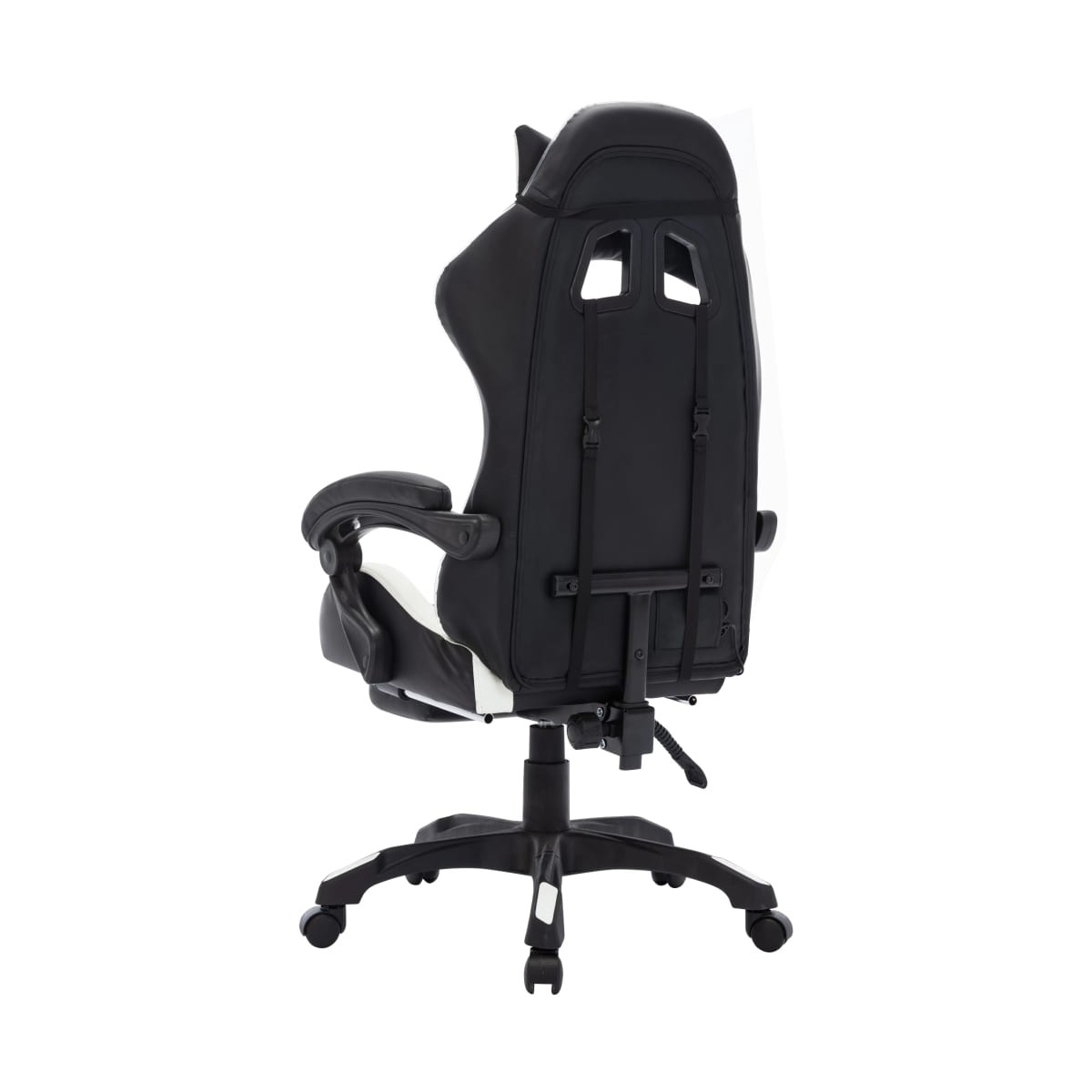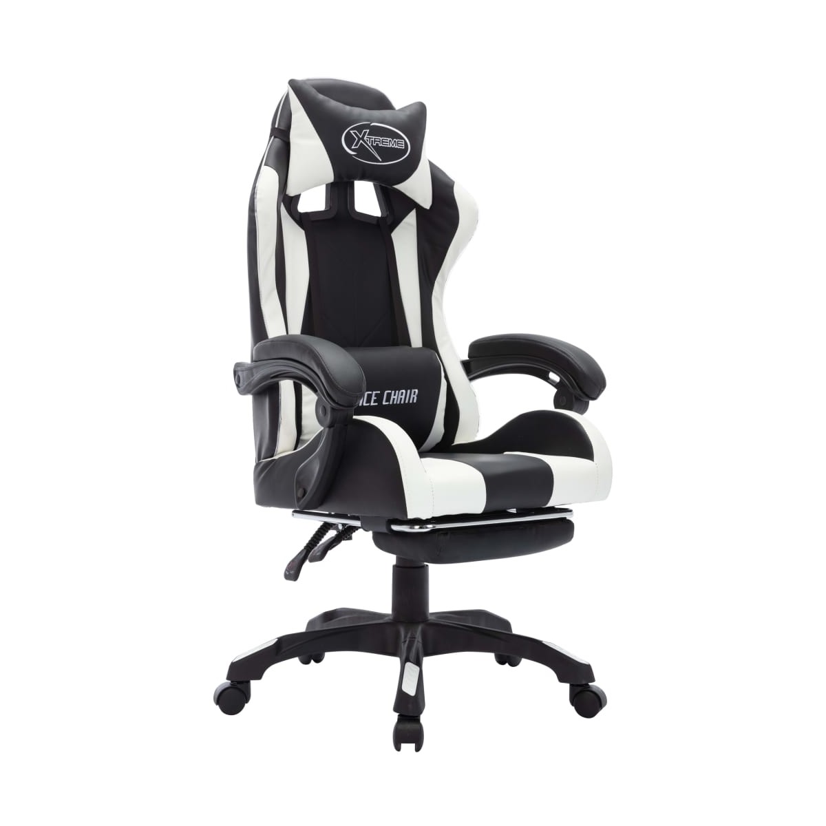 Esta distintiva y lujosa silla gaming proporciona un lugar comodísimo para jugar o trabajar. Esta silla gaming está tapizada en cuero sintético, por lo que es fácil de limpiar. La silla reclinable tiene un reposapiés retráctil que se puede guardar debajo del asiento cuando no se usa. La almohada para la cabeza y el cojín para la cintura con acolchado grueso incluidos brindan comodidad extra durante tu ajetreado día de trabajo. Con el mecanismo de elevación a gas, esta silla de oficina es ajustable en altura. También puedes regular el reclinado, así que si tienes ganas de echar una siesta, simplemente coloca el respaldo en una posición completamente reclinada. Además, el diseño giratorio de 360 grados y las 5 ruedas hacen que sea fácil de mover. El borde del respaldo está equipado con luces LED, para ofrecerte un mejor ambiente para jugar. Puedes cambiar el color y la intermitencia de las luces fácilmente mediante el mando a distancia.