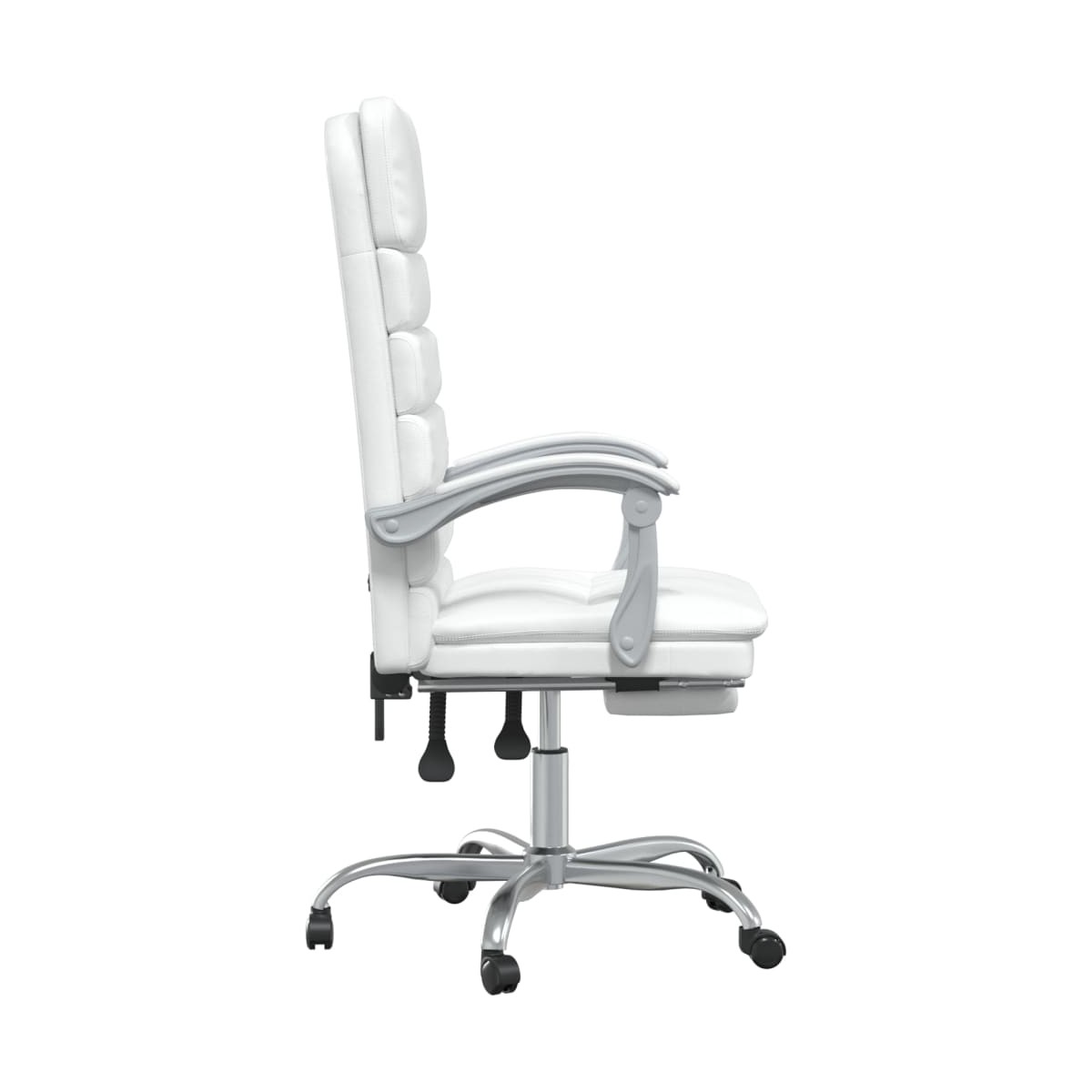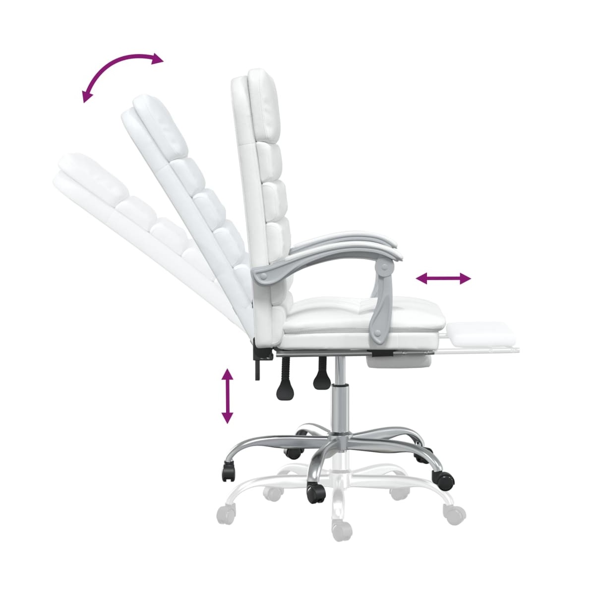 Con un diseño minimalista, esta moderna silla de oficina reclinable con función de masaje combina elegancia y comodidad, por lo que atraerá todas las miradas en tu espacio de trabajo. Material duradero: El cuero sintético de primera calidad es un material muy duradero. Es resistente a las manchas, por lo que es fácil de limpiar con un paño húmedo. Además, la superficie lisa da un aspecto lujoso y la belleza del cuero auténtico.Función de masaje: El punto de masaje en el respaldo calma la fatiga de forma eficaz y ayuda a que te relajes mientras trabajas.Respaldo y altura regulables: Está especialmente diseñado con una función reclinable para que puedas ajustar el respaldo y el reposapiés según prefieras. Utiliza la palanca para ajustar la altura del asiento a tu gusto.Diseño práctico: El diseño giratorio de 360 grados permite un amplio rango de movimientos. Además, resulta práctica de mover gracias a las ruedecitas.Estructura robusta y estable: Las estructuras de metal y madera contrachapada garantizan su solidez y estabilidad. Información útil:Cada producto viene con un manual de montaje en la caja para facilitar el montaje.El producto tiene un conector USB, pero no se incluye la fuente de alimentación USB de 5 V certificada.