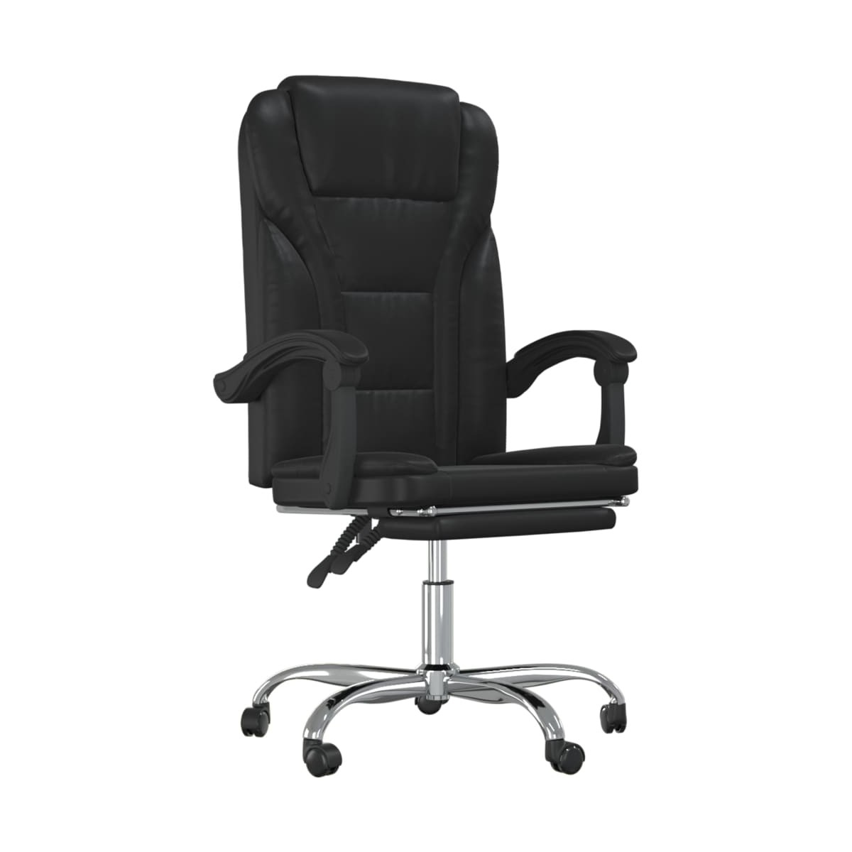 Con un diseño minimalista, esta moderna silla de oficina reclinable combina elegancia y comodidad, por lo que atraerá todas las miradas en tu lugar de trabajo. Material duradero: El cuero sintético de primera calidad es un material muy duradero. Es resistente a las manchas, por lo que es fácil de limpiar con un paño húmedo. Además, la superficie lisa da un aspecto lujoso y la belleza del cuero auténtico.Respaldo y altura regulables: Está especialmente diseñado con una función reclinable para que puedas ajustar el respaldo y el reposapiés según prefieras. Utiliza la palanca para ajustar la altura del asiento a tu gusto.Diseño práctico: El diseño giratorio de 360 grados permite un amplio rango de movimientos. Además, resulta práctica de mover gracias a las ruedecitas.Estructura robusta y estable: Las estructuras de metal y madera contrachapada garantizan su solidez y estabilidad. Nota:Cada producto viene con un manual de montaje en la caja para facilitar el montaje.