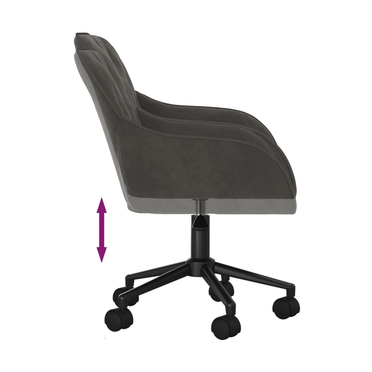 Esta moderna silla de oficina giratoria es una combinación perfecta de elegancia y comodidad. Atraerá todas las miradas en tu lugar de trabajo. Terciopelo suave: El terciopelo es una tela suave y lujosa, reconocida por su denso pelo de fibras cortadas de forma uniforme que tienen una suave pelusa. La tela de terciopelo posee un característico y suave tacto, lo que hace que sea cómoda al tacto.Estructura robusta y estable: Las estructuras de metal y madera contrachapada de la silla de escritorio garantizan su solidez y estabilidad.Altura regulable: Esta silla de oficina cuenta con un mecanismo de elevación a gas; puedes utilizar la palanca para ajustar la altura del asiento a tu gusto y comodidad.Silla flexible con ruedas: El diseño giratorio de 360 grados y las ruedecitas permiten un amplio rango de movimientos.