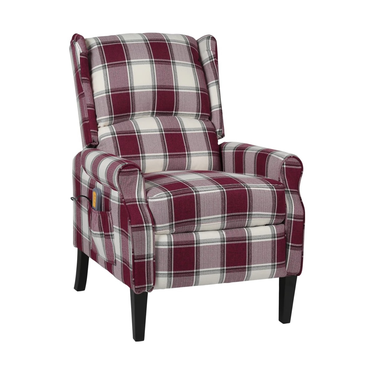 Este sillón reclinable de masaje especialmente diseñado es una excelente solución de asiento y un aporte perfecto para tu salón. El sillón de masaje eléctrico está fabricado en tela y sostenido por pies de madera, lo que lo hace fuerte y suave para sentarse. El sillón reclinable de masaje tiene 6 puntos de masaje para la espalda, el asiento y las piernas. El mando incluido te permite elegir diferentes programas de masaje. Asimismo, el respaldo se puede regular hacia detrás y el reposapiés, hacia arriba. Esta posición te permite tumbarte de forma cómoda. El sillón reclinable y eléctrico de masaje también está equipado con un bolsillo lateral para el mando. Nota: El producto tiene un conector USB, pero la fuente de alimentación USB de 5V certificada no está incluida.