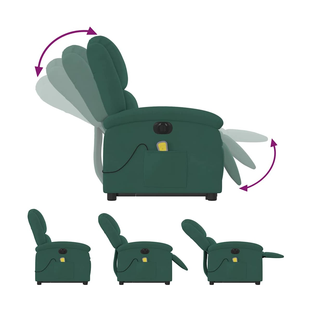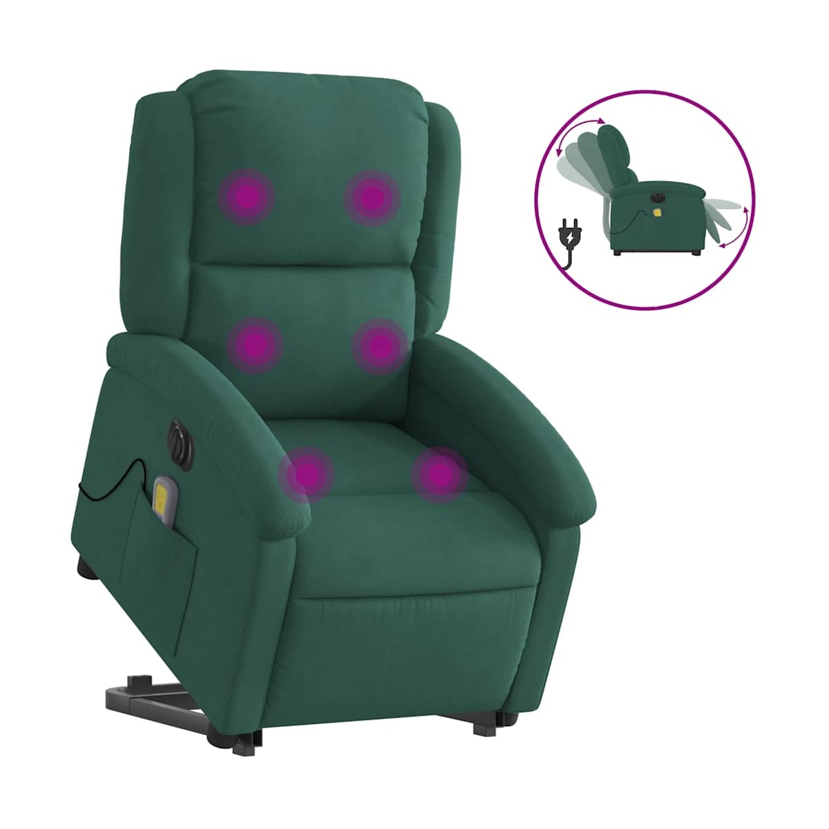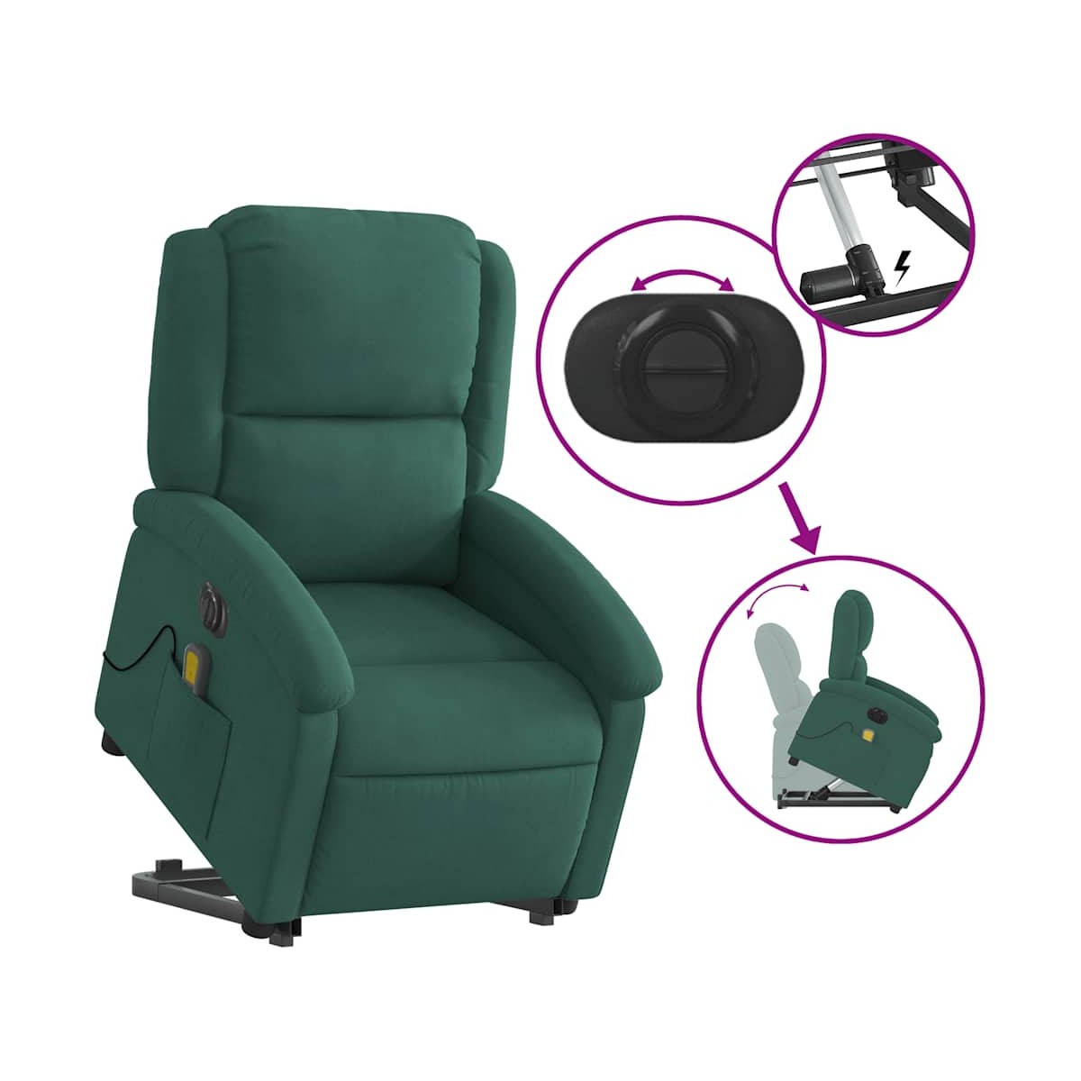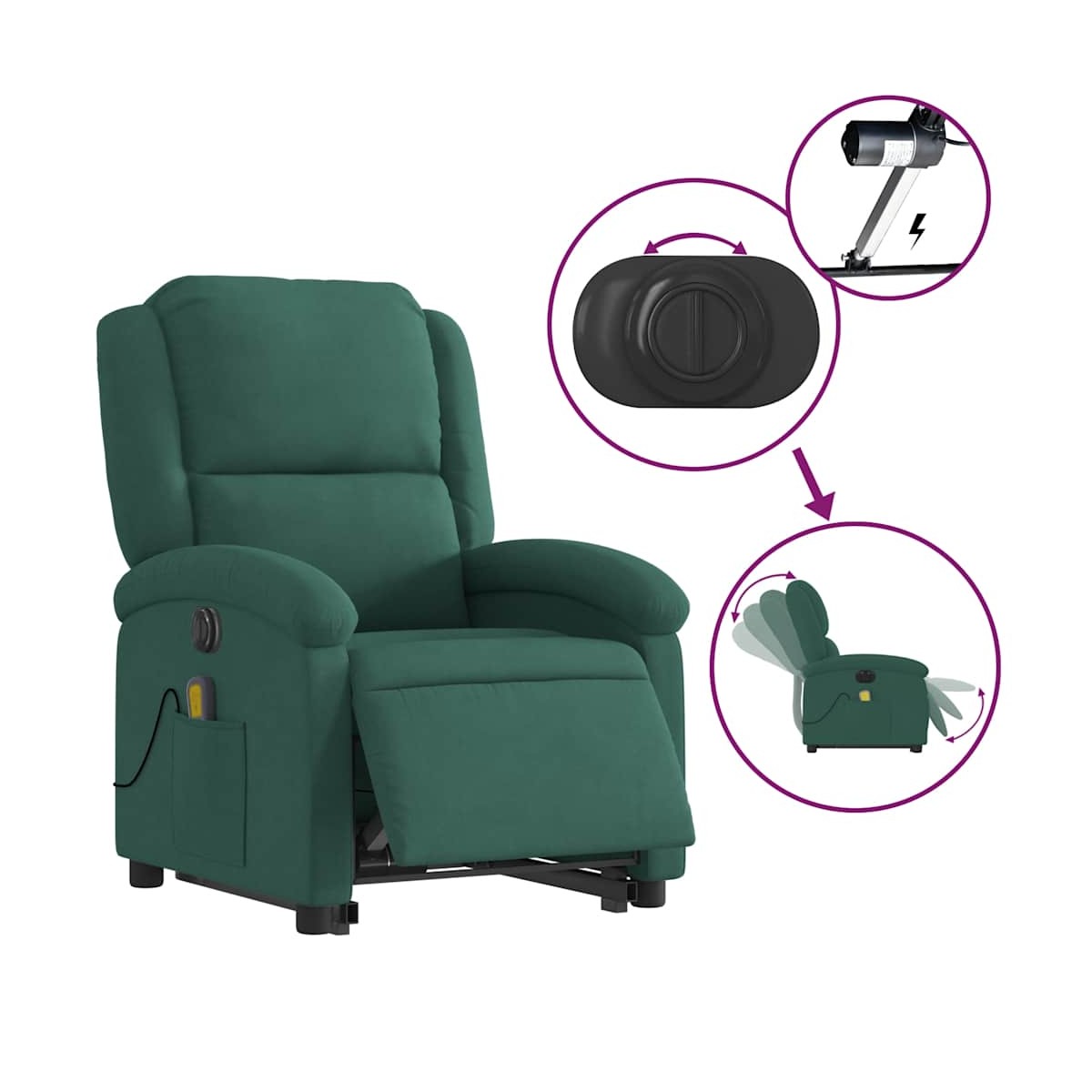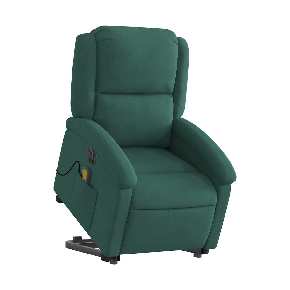 ¡Siéntate y déjate llevar en este cómodo sillón reclinable eléctrico! Función de elevación eléctrica: Este sillón reclinable para las personas mayores está equipado con un motor eléctrico para la función de elevación. Gracias a la función de elevación que empuja el sillón hacia arriba por completo, te puedes levantar fácilmente, sin tensiones en la espalda y las rodillas, con sólo pulsar el botón.Función reclinable eléctrica: Este sillón reclinable también está equipado con un motor eléctrico que ayuda a ajustar automáticamente el reposapiés y el respaldo a cualquier posición según tu comodidad con solo presionar el botón en el lateral del sillón. Esta característica permite una inclinación máxima de 135 grados. Además, el respaldo puede volver automáticamente a su lugar original con solo presionar un botón.Función de vibración: Los 6 puntos de masaje te harán disfrutar de un masaje mejor enfocado. Además, el mando incluido te permite elegir diferentes programas de masaje. La función de masaje funciona a través del conector USB que requiere una fuente de alimentación USB de 5 V certificada (no incluida).Cómodo asiento: El asiento acolchado, el respaldo y los amplios reposabrazos cubiertos de terciopelo proporcionan una sensación cómoda y acogedora, para que estés de maravilla mientras te sientas. El terciopelo es una tela suave y cómoda, agradable al tacto.Práctico bolsillo lateral: Este sillón cuenta con un bolsillo lateral para guardar el mando a distancia o mantener tus cosas al alcance de la mano.Estructura maciza y estable: La estructura, hecha de madera y metal, proporciona una estructura y una estabilidad fuertes. Este sillón reclinables es cómodo y duradero.