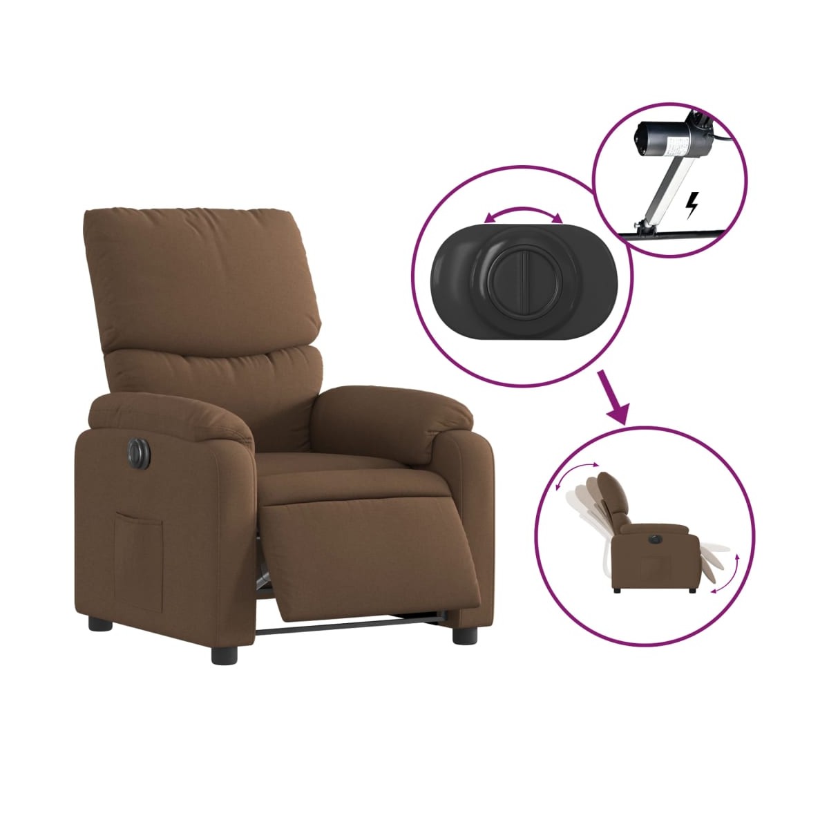¡Siéntate y descansa en este comodísimo sillón reclinable eléctrico! Función de reclinación eléctrica: Este sillón reclinable está equipado con un motor eléctrico para ajustar el reposapiés y el respaldo de forma automática a cualquier posición que desees con sólo pulsar el botón en el lateral del sillón. Esta característica permite una inclinación máxima de 135 grados. Además, el respaldo vuelve automáticamente a la posición original con sólo pulsar el botón.Cómodo asiento: El mullido asiento, el respaldo y los amplios reposabrazos cubiertos de tela proporcionan una sensación cómoda y acogedora, para que estés de maravilla mientras estás sentado. La tela posee un aspecto sencillo y limpio, y es transpirable y duradera.Práctico bolsillo lateral: Este sillón tiene un bolsillo lateral para que guardes tus cosas al alcance de la mano.Estructura maciza y estable: La estructura, hecha de madera y metal, proporciona una estructura y una estabilidad fuertes. Este sillón reclinables es cómodo y duradero.