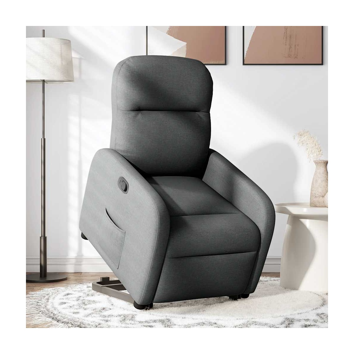 ¡Siéntate y descansa en este comodísimo sillón reclinable elevador! Función de elevación eléctrica: Este sillón reclinable para las personas mayores está equipado con un motor eléctrico para la función de elevación. Gracias a la función de elevación que empuja el sillón hacia arriba por completo, te puedes levantar fácilmente, sin tensiones en la espalda y las rodillas, con sólo pulsar el botón.Función de reclinado manual: Este sillón reclinable tiene un mango en el lado derecho. Con sólo tirar de él, puedes ajustar manualmente el reposapiés y el respaldo a cualquier posición que te resulte cómoda. Esta función permite una inclinación máxima de 135 grados. Además, el respaldo vuelve rápidamente a su posición original con solo tirar del mango.Cómodo asiento: El mullido asiento, el respaldo y los amplios reposabrazos cubiertos de tela proporcionan una sensación cómoda y acogedora, para que estés de maravilla mientras estás sentado. La tela posee un aspecto sencillo y limpio, y es transpirable y duradera.Práctico bolsillo lateral: Este sillón tiene un bolsillo lateral para que guardes tus cosas al alcance de la mano.Estructura maciza y estable: La estructura, hecha de madera y metal, proporciona una estructura y una estabilidad fuertes. Este sillón reclinables es cómodo y duradero.
