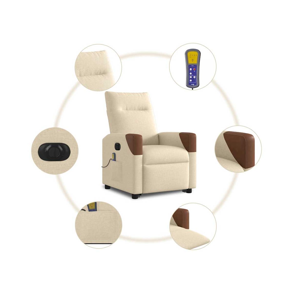 ¡Siéntate y déjate llevar en este cómodo sillón reclinable eléctrico! Función de elevación eléctrica: Este sillón reclinable para las personas mayores está equipado con un motor eléctrico para la función de elevación. Gracias a la función de elevación que empuja el sillón hacia arriba por completo, te puedes levantar fácilmente, sin tensiones en la espalda y las rodillas, con sólo pulsar el botón.Función reclinable eléctrica: Este sillón reclinable también está equipado con un motor eléctrico que ayuda a ajustar automáticamente el reposapiés y el respaldo a cualquier posición según tu comodidad con solo presionar el botón en el lateral del sillón. Esta característica permite una inclinación máxima de 135 grados. Además, el respaldo vuelve automáticamente al lugar original con solo presionar el botón.Función de vibración: Los 6 puntos de masaje te harán disfrutar de un masaje mejor enfocado. Además, el mando incluido te permite elegir diferentes programas de masaje. La función de masaje funciona a través del conector USB que requiere una fuente de alimentación USB de 5 V certificada (no incluida).Cómodo asiento: El mullido asiento , el respaldo y los amplios reposabrazos cubiertos de tela proporcionan una sensación cómoda y acogedora, para que estés de maravilla mientras estás sentado. La tela posee un aspecto sencillo y limpio, y es transpirable y duradera.Práctico bolsillo lateral: Este sillón tiene un bolsillo lateral para que guardes tus cosas al alcance de la mano.Estructura maciza y estable: La estructura, hecha de madera y metal, proporciona una estructura y una estabilidad fuertes. Este sillón reclinables es cómodo y duradero.