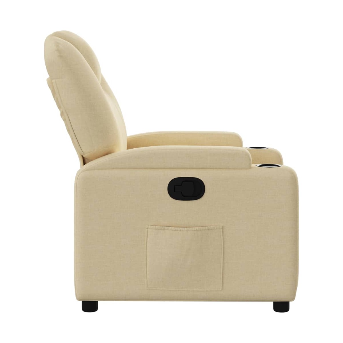 ¡Siéntate y descansa en este comodísimo sillón reclinable! Función de reclinado manual: Este sillón reclinable tiene un mango en el lado derecho. Con sólo tirar de él, puedes ajustar manualmente el reposapiés y el respaldo a cualquier posición que te resulte cómoda. Esta función permite una inclinación máxima de 135 grados. Además, el respaldo vuelve rápidamente a su posición original con solo tirar del mango.Cómodo asiento: El mullido asiento , el respaldo y los amplios reposabrazos cubiertos de tela proporcionan una sensación cómoda y acogedora, para que estés de maravilla mientras estás sentado. La tela posee un aspecto sencillo y limpio, y es transpirable y duradera.Prácticos portavasos y bolsillo lateral: Este sillón cuenta con dos cómodos portavasos para las bebidas y un bolsillo lateral para que guardes cosas al alcance de la mano.Estructura maciza y estable: La estructura, hecha de madera y metal, proporciona una estructura y una estabilidad fuertes. Este sillón reclinables es cómodo y duradero.