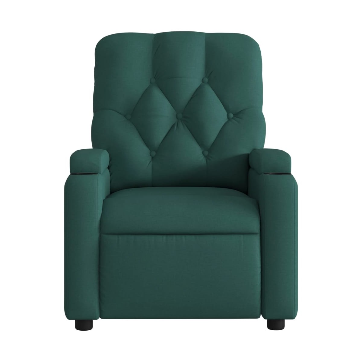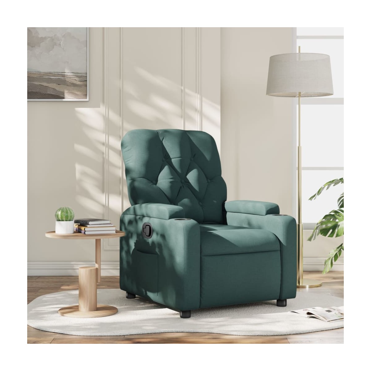 ¡Siéntate y descansa en este comodísimo sillón reclinable! Función de reclinado manual: Este sillón reclinable tiene un mango en el lado derecho. Con sólo tirar de él, puedes ajustar manualmente el reposapiés y el respaldo a cualquier posición que te resulte cómoda. Esta función permite una inclinación máxima de 135 grados. Además, el respaldo vuelve rápidamente a su posición original con solo tirar del mango.Cómodo asiento: El mullido asiento , el respaldo y los amplios reposabrazos cubiertos de tela proporcionan una sensación cómoda y acogedora, para que estés de maravilla mientras estás sentado. La tela posee un aspecto sencillo y limpio, y es transpirable y duradera.Prácticos portavasos y bolsillo lateral: Este sillón cuenta con dos cómodos portavasos para las bebidas y un bolsillo lateral para que guardes cosas al alcance de la mano.Estructura maciza y estable: La estructura, hecha de madera y metal, proporciona una estructura y una estabilidad fuertes. Este sillón reclinables es cómodo y duradero.