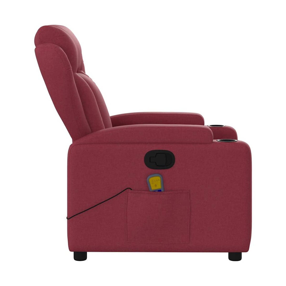 ¡Siéntate y descansa en este comodísimo sillón reclinable de masaje! Función de reclinado manual: Este sillón reclinable tiene un mango en el lado derecho. Con sólo tirar de él, puedes ajustar manualmente el reposapiés y el respaldo a cualquier posición que te resulte cómoda. Esta función permite una inclinación máxima de 135 grados. Además, el respaldo vuelve rápidamente a su posición original con solo tirar del mango.Función de vibración: Los 6 puntos de masaje te permiten disfrutar de un masaje mejor enfocado. Además, el mando incluido te permite elegir diferentes programas de masaje. La función de masaje funciona con el conector USB, pero no se incluye la fuente de alimentación USB de 5 V certificada.Cómodo asiento: El mullido asiento , el respaldo y los amplios reposabrazos cubiertos de tela proporcionan una sensación cómoda y acogedora, para que estés de maravilla mientras estás sentado. La tela posee un aspecto sencillo y limpio, y es transpirable y duradera.Prácticos portavasos y bolsillo lateral: Este sillón cuenta con dos cómodos portavasos para las bebidas y un bolsillo lateral para que tengas tus cosas al alcance de la mano.Estructura maciza y estable: La estructura, hecha de madera y metal, proporciona una estructura y una estabilidad fuertes. Este sillón reclinables es cómodo y duradero.