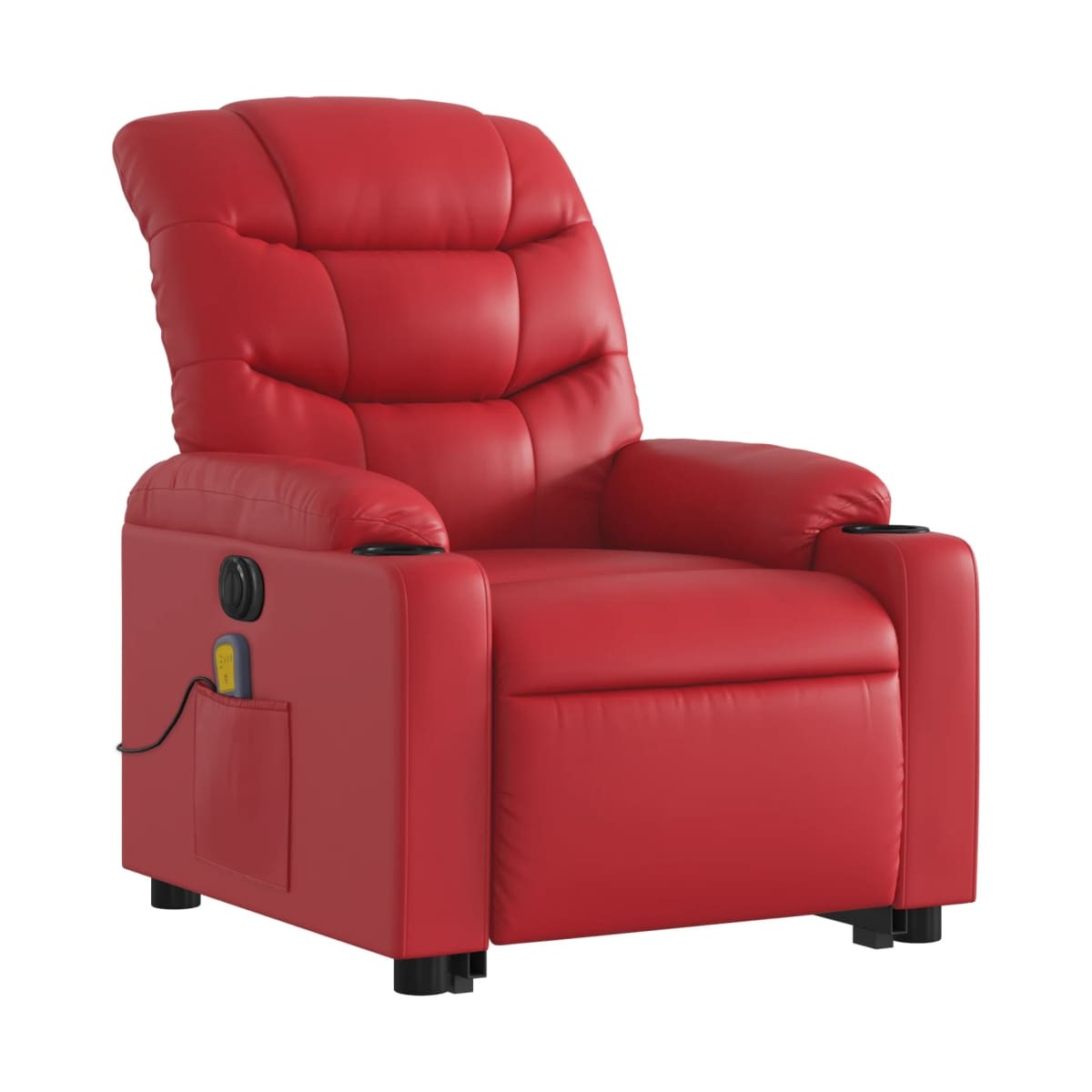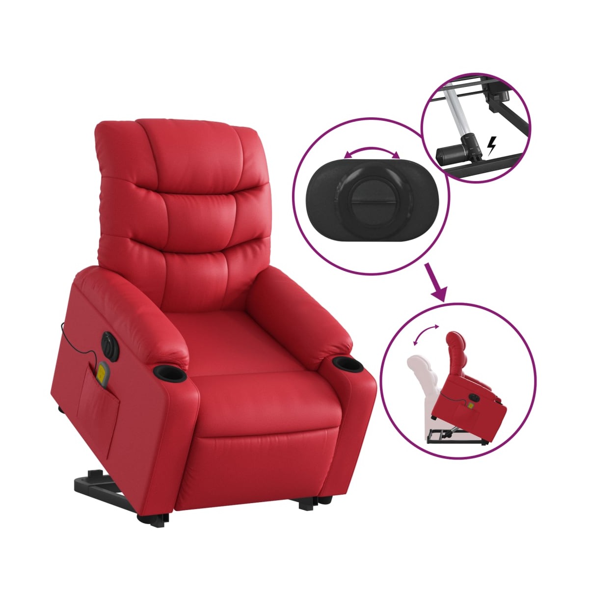 ¡Siéntate y déjate llevar en este cómodo sillón reclinable eléctrico! Función de elevación eléctrica: Este sillón reclinable para las personas mayores está equipado con un motor eléctrico para la función de elevación. Gracias a la función de elevación que empuja el sillón hacia arriba por completo, te puedes levantar fácilmente, sin tensiones en la espalda y las rodillas, con sólo pulsar el botón.Función reclinable eléctrica: Este sillón reclinable también está equipado con un motor eléctrico que ayuda a ajustar automáticamente el reposapiés y el respaldo a cualquier posición según tu comodidad con solo presionar el botón en el lateral del sillón. Esta característica permite una inclinación máxima de 135 grados. Además, el respaldo puede volver automáticamente a su lugar original con solo presionar un botón.Función de vibración: Los 6 puntos de masaje te harán disfrutar de un masaje mejor enfocado. Además, el mando incluido te permite elegir diferentes programas de masaje. La función de masaje funciona a través del conector USB que requiere una fuente de alimentación USB de 5 V certificada (no incluida).Cómodo asiento: El grueso acolchado del asiento, el respaldo y los anchos reposabrazos recubiertos de cuero sintético proporcionan una sensación acogedora y cálida, como si te estuvieran abrazando. El cuero sintético es un material muy duradero y resistente a las manchas, por lo que resulta fácil de limpiar con un paño húmedo. Además, la superficie lisa le confiere un aspecto lujoso y la belleza de la piel auténtica.Práctico bolsillo lateral: Este sillón cuenta con un bolsillo lateral para guardar el mando a distancia o mantener tus cosas al alcance de la mano.Estructura maciza y estable: La estructura, hecha de madera y metal, proporciona una estructura y una estabilidad fuertes. Este sillón reclinables es cómodo y duradero.