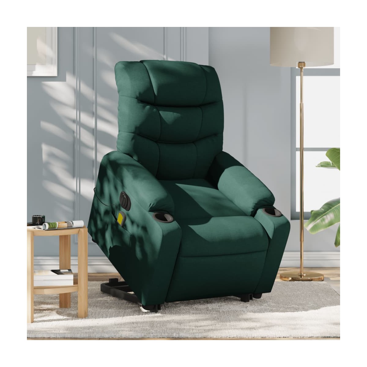 ¡Siéntate y déjate llevar en este cómodo sillón reclinable eléctrico! Función de elevación eléctrica: Este sillón reclinable para las personas mayores está equipado con un motor eléctrico para la función de elevación. Gracias a la función de elevación que empuja el sillón hacia arriba por completo, te puedes levantar fácilmente, sin tensiones en la espalda y las rodillas, con sólo pulsar el botón.Función reclinable eléctrica: Este sillón reclinable también está equipado con un motor eléctrico que ayuda a ajustar automáticamente el reposapiés y el respaldo a cualquier posición según tu comodidad con solo presionar el botón en el lateral del sillón. Esta característica permite una inclinación máxima de 135 grados. Además, el respaldo puede volver automáticamente a su lugar original con solo presionar un botón.Función de vibración: Los 6 puntos de masaje te harán disfrutar de un masaje mejor enfocado. Además, el mando incluido te permite elegir diferentes programas de masaje. La función de masaje funciona a través del conector USB que requiere una fuente de alimentación USB de 5 V certificada (no incluida).Cómodo asiento: El mullido asiento , el respaldo y los amplios reposabrazos cubiertos de tela proporcionan una sensación cómoda y acogedora, para que estés de maravilla mientras estás sentado. La tela posee un aspecto sencillo y limpio, y es transpirable y duradera.Práctico bolsillo lateral: Este sillón cuenta con un bolsillo lateral para guardar el mando a distancia o mantener tus cosas al alcance de la mano.Estructura maciza y estable: La estructura, hecha de madera y metal, proporciona una estructura y una estabilidad fuertes. Este sillón reclinables es cómodo y duradero.