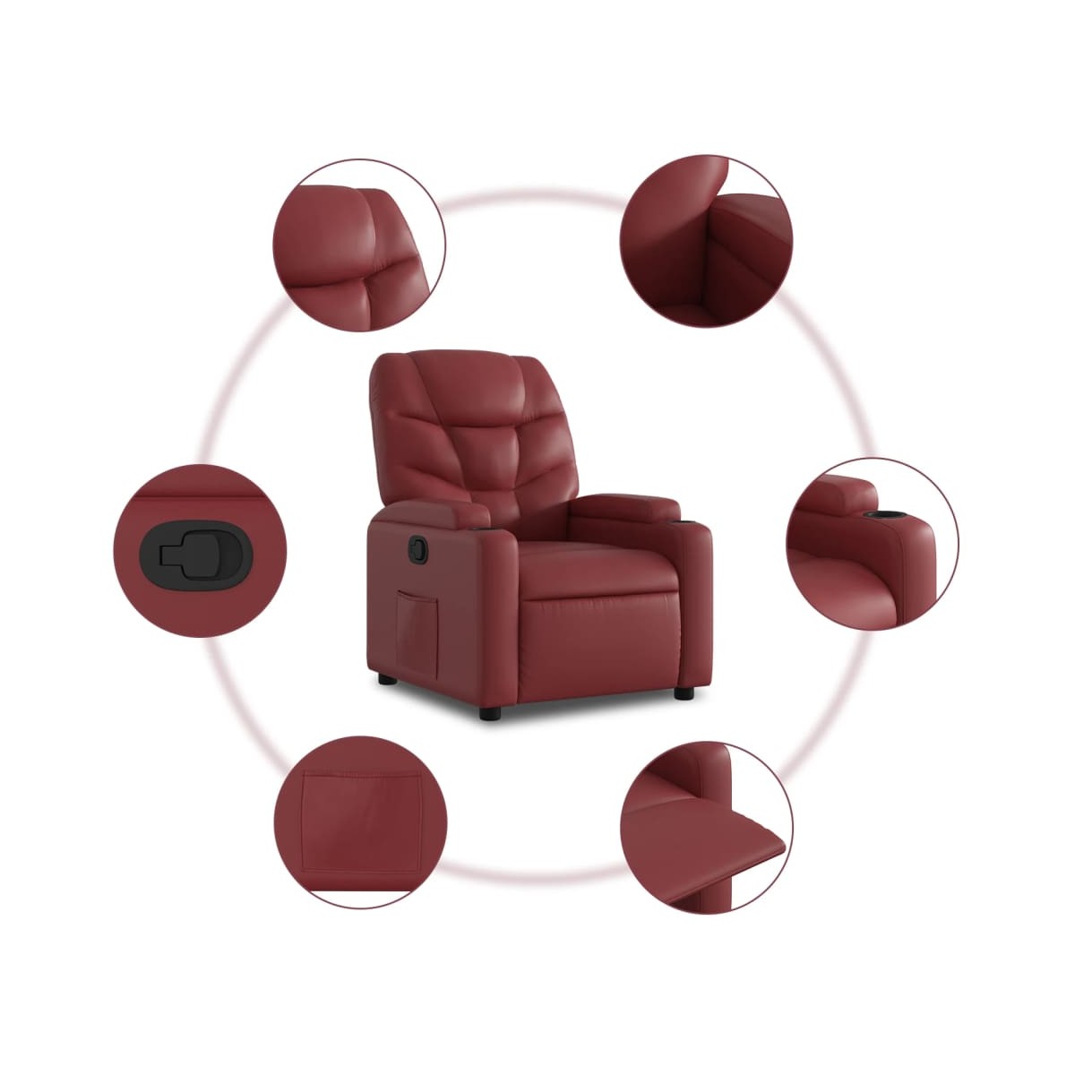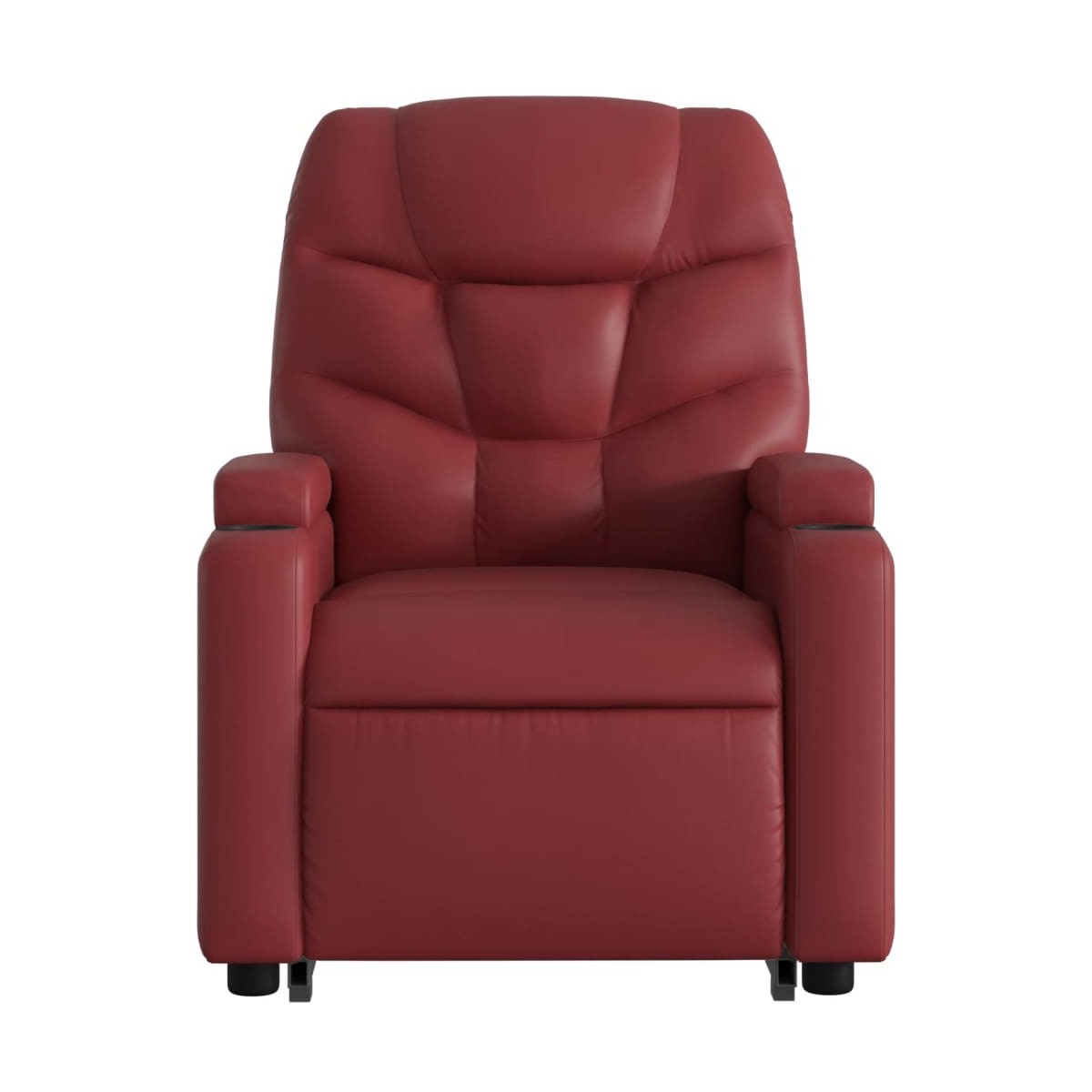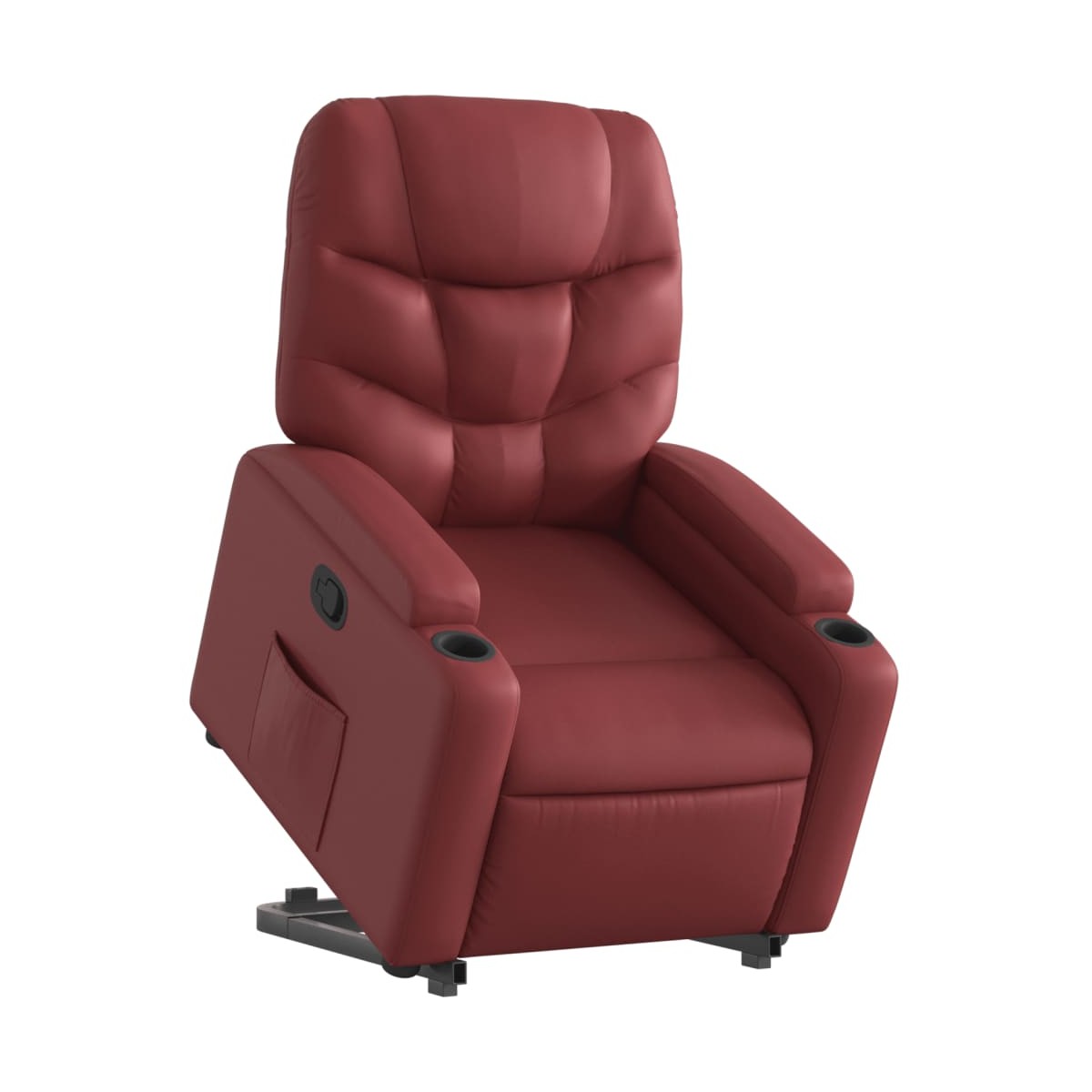 ¡Siéntate y descansa en este comodísimo sillón reclinable elevador! Función de elevación eléctrica: Este sillón reclinable para las personas mayores está equipado con un motor eléctrico para la función de elevación. Gracias a la función de elevación que empuja el sillón hacia arriba por completo, te puedes levantar fácilmente, sin tensiones en la espalda y las rodillas, con sólo pulsar el botón.Función de reclinado manual: Este sillón reclinable tiene un mango en el lado derecho. Con sólo tirar de él, puedes ajustar manualmente el reposapiés y el respaldo a cualquier posición que te resulte cómoda. Esta función permite una inclinación máxima de 135 grados. Además, el respaldo vuelve rápidamente a su posición original con solo tirar del mango.Cómodo asiento: El grueso acolchado del asiento, el respaldo y los anchos reposabrazos recubiertos de cuero sintético proporcionan una sensación acogedora y cálida, como si te estuvieran abrazando. El cuero sintético es un material muy duradero y resistente a las manchas, por lo que resulta fácil de limpiar con un paño húmedo. Además, la superficie lisa le confiere un aspecto lujoso y la belleza del cuero auténtico.Prácticos portavasos y bolsillo lateral: Este sillón cuenta con dos cómodos portavasos para las bebidas y un bolsillo lateral para que guardes cosas al alcance de la mano.Estructura maciza y estable: La estructura, hecha de madera y metal, proporciona una estructura y una estabilidad fuertes. Este sillón reclinables es cómodo y duradero.