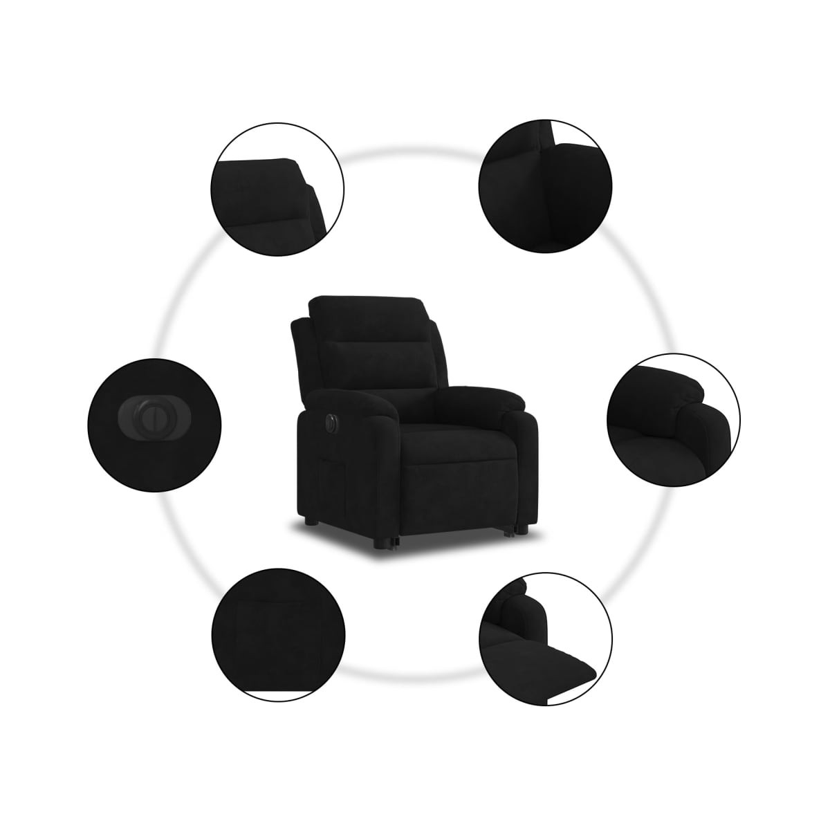 ¡Siéntate y déjate llevar en este comodísimo sillón reclinable y elevable eléctrico! Función de elevación eléctrica: Este sillón reclinable para las personas mayores está equipado con un motor eléctrico para la función de elevación. Gracias a la función de elevación que empuja el sillón hacia arriba por completo, te puedes levantar fácilmente, sin tensiones en la espalda y las rodillas, con sólo pulsar el botón.Función reclinable eléctrica: Este sillón reclinable también está equipado con un motor eléctrico que ayuda a ajustar el reposapiés y el respaldo de forma automática a cualquier posición que desees con solo presionar el botón en el lateral del sillón. Esta característica permite una inclinación máxima de 135 grados. Además, el respaldo vuelve automáticamente al lugar original con solo presionar el botón.Cómodo asiento: El asiento acolchado, el respaldo y los amplios reposabrazos cubiertos de terciopelo proporcionan una sensación cómoda y acogedora, para que estés de maravilla mientras te sientas. El terciopelo es una tela suave y cómoda, agradable al tacto.Práctico bolsillo lateral: Este sillón tiene un bolsillo lateral para que guardes tus cosas al alcance de la mano.Estructura maciza y estable: La estructura, hecha de madera y metal, proporciona una estructura y una estabilidad fuertes. Este sillón reclinables es cómodo y duradero.