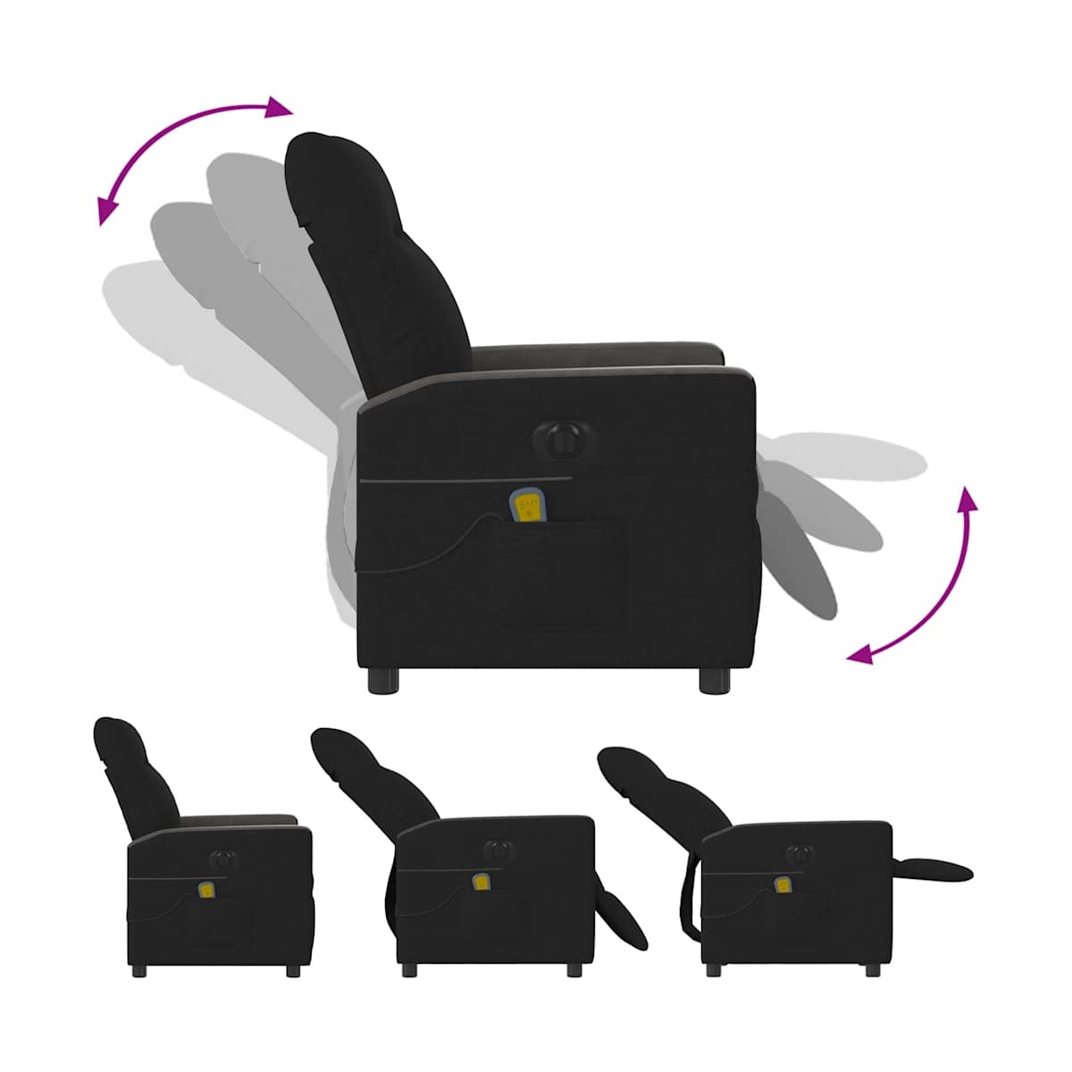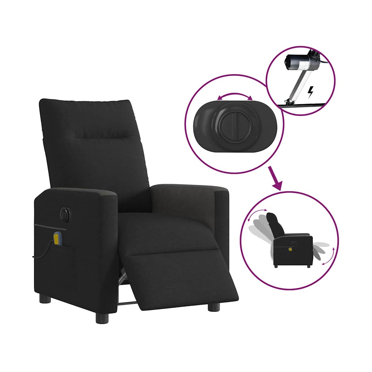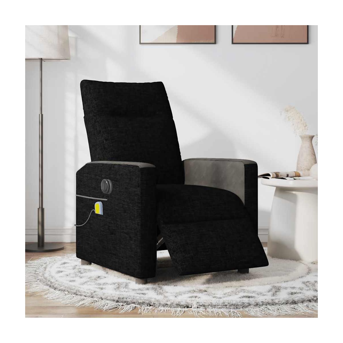 ¡Siéntate y descansa en este comodísimo sillón reclinable de masaje eléctrico! Función de reclinación eléctrica: Este sillón reclinable está equipado con un motor eléctrico para ajustar el reposapiés y el respaldo de forma automática a cualquier posición que desees con sólo pulsar el botón en el lateral del sillón. Esta característica permite una inclinación máxima de 135 grados. Además, el respaldo vuelve automáticamente a la posición original con sólo pulsar el botón.Función de vibración: Los 6 puntos de masaje te harán disfrutar de un masaje mejor enfocado. Además, el mando incluido te permite elegir diferentes programas de masaje. La función de masaje funciona a través del conector USB que requiere una fuente de alimentación USB de 5 V certificada (no incluida).Cómodo asiento: El mullido asiento , el respaldo y los amplios reposabrazos cubiertos de tela proporcionan una sensación cómoda y acogedora, para que estés de maravilla mientras estás sentado. La tela posee un aspecto sencillo y limpio, y es transpirable y duradera.Práctico bolsillo lateral: Este sillón cuenta con un bolsillo lateral para guardar el mando a distancia o mantener tus cosas al alcance de la mano.Estructura maciza y estable: La estructura, hecha de madera y metal, proporciona una estructura y una estabilidad fuertes. Este sillón reclinables es cómodo y duradero.