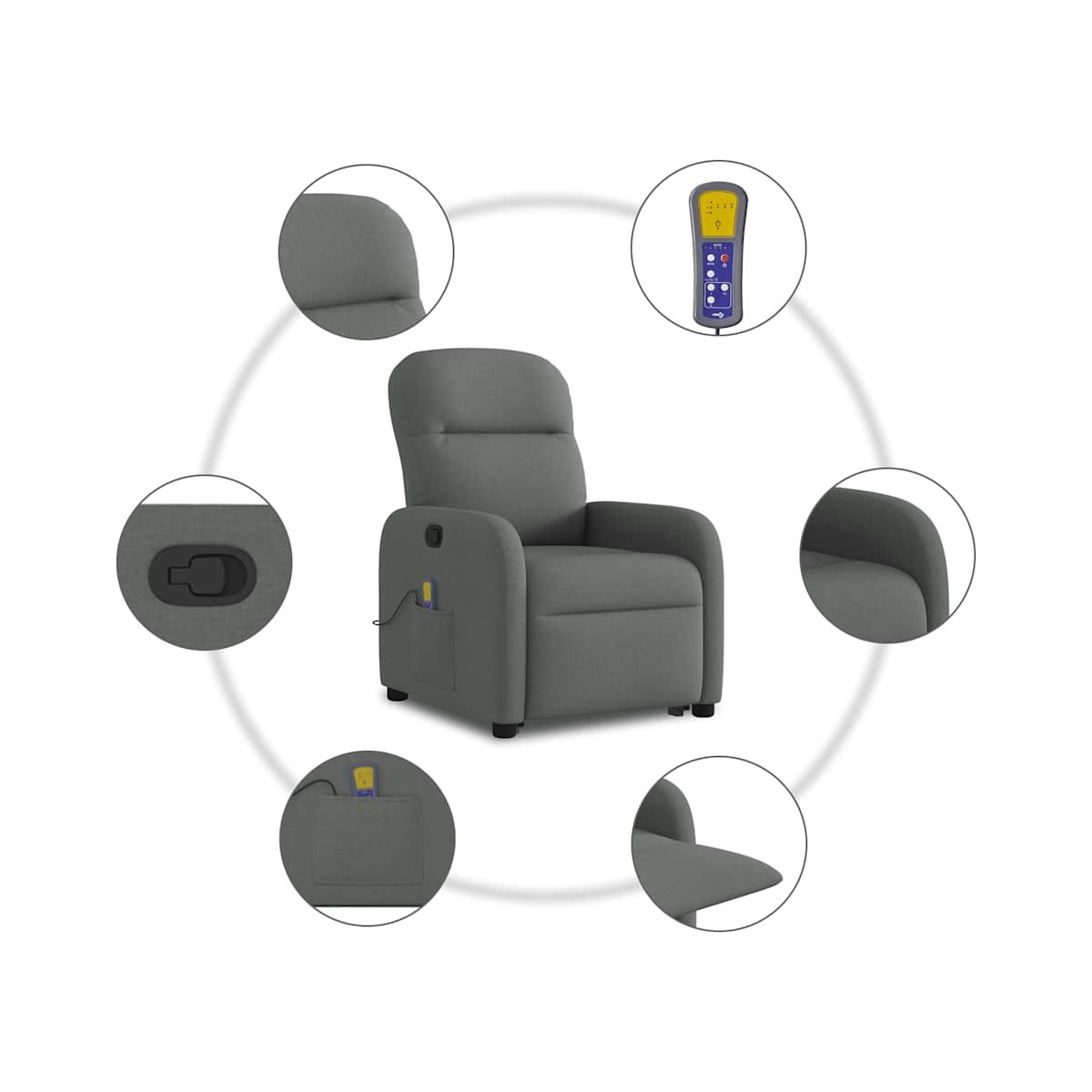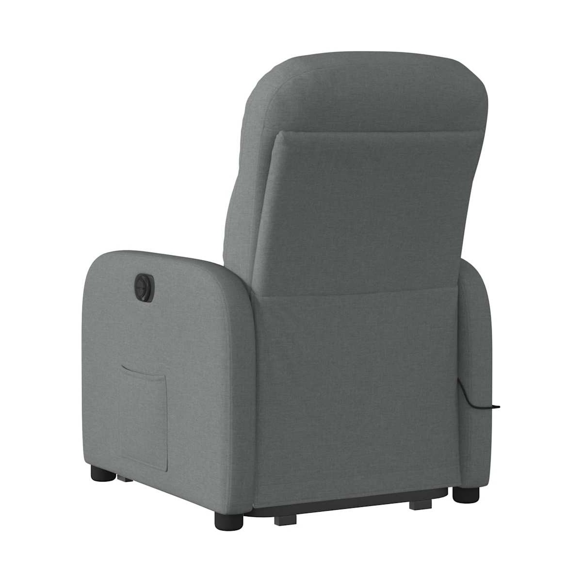 ¡Siéntate y descansa en este comodísimo sillón reclinable de masaje elevable! Función de elevación eléctrica: Este sillón reclinable para las personas mayores está equipado con un motor eléctrico para la función de elevación. Gracias a la función de elevación que empuja el sillón hacia arriba por completo, te puedes levantar fácilmente, sin tensiones en la espalda y las rodillas, con sólo pulsar el botón.Función de reclinado manual: Este sillón reclinable tiene un mango en el lado derecho. Con sólo tirar de él, puedes ajustar manualmente el reposapiés y el respaldo a cualquier posición que te resulte cómoda. Esta función permite una inclinación máxima de 135 grados. Además, el respaldo vuelve rápidamente a su posición original con solo tirar del mango.Función de vibración: Los 6 puntos de masaje te harán disfrutar de un masaje mejor enfocado. Además, el mando incluido te permite elegir diferentes programas de masaje. La función de masaje funciona a través del conector USB que requiere una fuente de alimentación USB de 5 V certificada (no incluida).Cómodo asiento: El mullido asiento , el respaldo y los amplios reposabrazos cubiertos de tela proporcionan una sensación cómoda y acogedora, para que estés de maravilla mientras estás sentado. La tela posee un aspecto sencillo y limpio, y es transpirable y duradera.Práctico bolsillo lateral: Este sillón cuenta con un bolsillo lateral para guardar el mando a distancia o mantener tus cosas al alcance de la mano.Estructura maciza y estable: La estructura, hecha de madera y metal, proporciona una estructura y una estabilidad fuertes. Este sillón reclinables es cómodo y duradero.