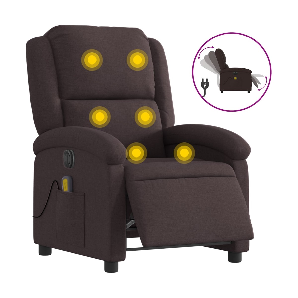 ¡Siéntate y descansa en este comodísimo sillón reclinable de masaje eléctrico! Función de reclinación eléctrica: Este sillón reclinable está equipado con un motor eléctrico para ajustar el reposapiés y el respaldo de forma automática a cualquier posición que desees con sólo pulsar el botón en el lateral del sillón. Esta característica permite una inclinación máxima de 135 grados. Además, el respaldo vuelve automáticamente a la posición original con sólo pulsar el botón.Función de vibración: Los 6 puntos de masaje te harán disfrutar de un masaje mejor enfocado. Además, el mando incluido te permite elegir diferentes programas de masaje. La función de masaje funciona a través del conector USB que requiere una fuente de alimentación USB de 5 V certificada (no incluida).Cómodo asiento: El mullido asiento , el respaldo y los amplios reposabrazos cubiertos de tela proporcionan una sensación cómoda y acogedora, para que estés de maravilla mientras estás sentado. La tela posee un aspecto sencillo y limpio, y es transpirable y duradera.Práctico bolsillo lateral: Este sillón cuenta con un bolsillo lateral para guardar el mando a distancia o mantener tus cosas al alcance de la mano.Estructura maciza y estable: La estructura, hecha de madera y metal, proporciona una estructura y una estabilidad fuertes. Este sillón reclinables es cómodo y duradero.