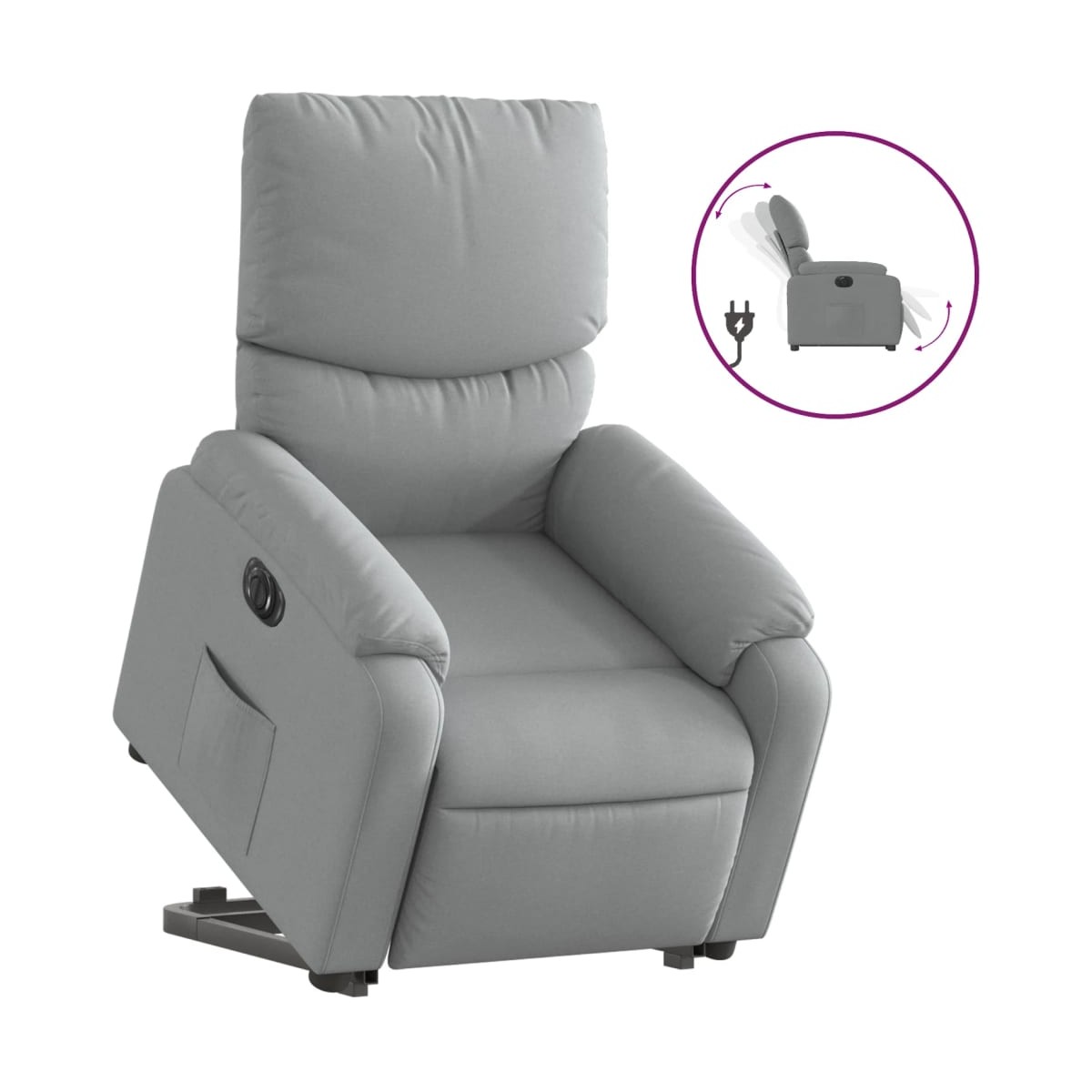 ¡Siéntate y déjate llevar en este comodísimo sillón reclinable y elevable eléctrico! Función de elevación eléctrica: Este sillón reclinable para las personas mayores está equipado con un motor eléctrico para la función de elevación. Gracias a la función de elevación que empuja el sillón hacia arriba por completo, te puedes levantar fácilmente, sin tensiones en la espalda y las rodillas, con sólo pulsar el botón.Función reclinable eléctrica: Este sillón reclinable también está equipado con un motor eléctrico que ayuda a ajustar el reposapiés y el respaldo de forma automática a cualquier posición que desees con solo presionar el botón en el lateral del sillón. Esta característica permite una inclinación máxima de 135 grados. Además, el respaldo vuelve automáticamente al lugar original con solo presionar el botón.Cómodo asiento: El mullido asiento, el respaldo y los amplios reposabrazos cubiertos de tela proporcionan una sensación cómoda y acogedora, para que estés de maravilla mientras estás sentado. La tela posee un aspecto sencillo y limpio, y es transpirable y duradera.Práctico bolsillo lateral: Este sillón tiene un bolsillo lateral para que guardes tus cosas al alcance de la mano.Estructura maciza y estable: La estructura, hecha de madera y metal, proporciona una estructura y una estabilidad fuertes. Este sillón reclinables es cómodo y duradero.