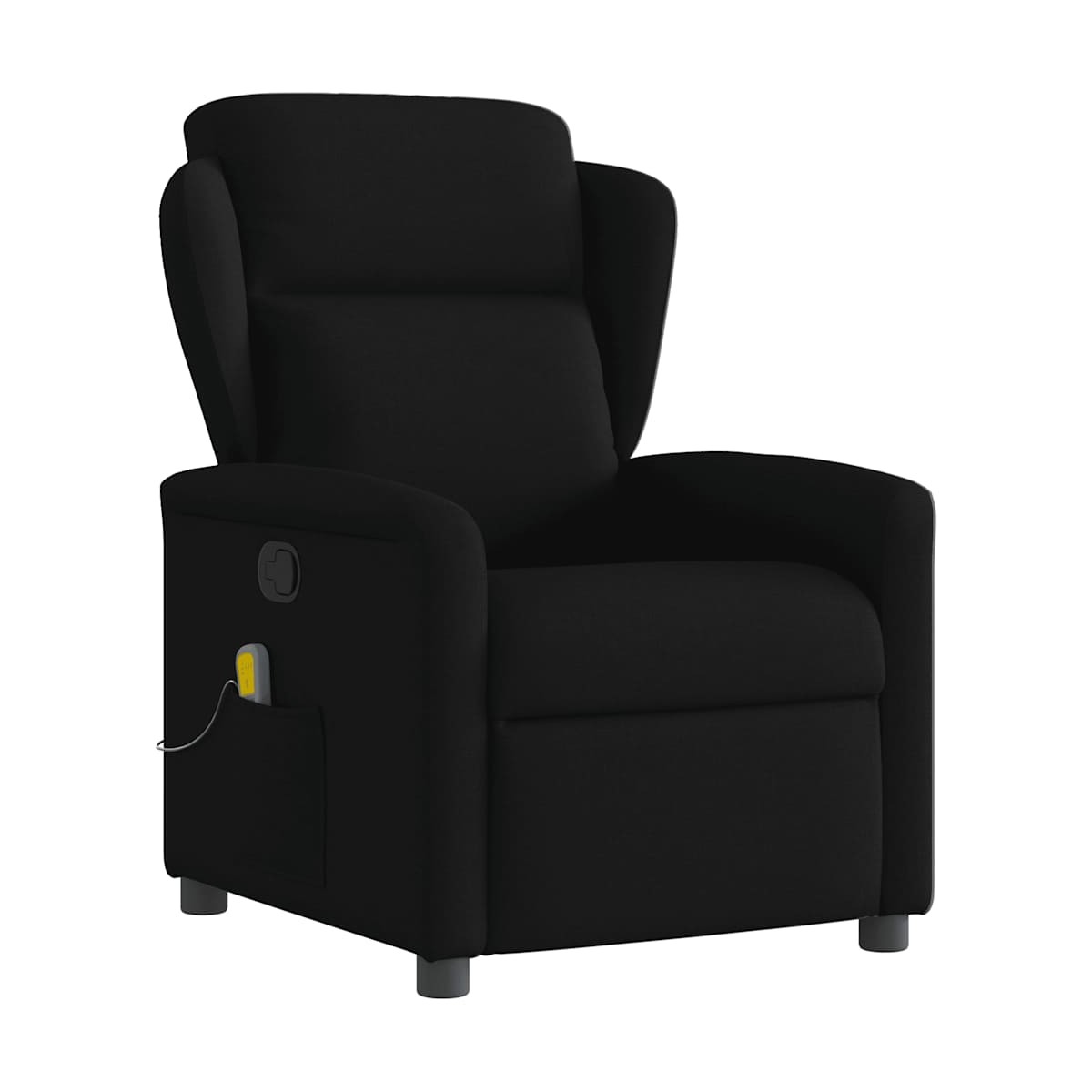 ¡Siéntate y descansa en este comodísimo sillón reclinable de masaje! Función de reclinado manual: Este sillón reclinable tiene un mango en el lado derecho. Con sólo tirar de él, puedes ajustar manualmente el reposapiés y el respaldo a cualquier posición que te resulte cómoda. Esta función permite una inclinación máxima de 135 grados. Además, el respaldo vuelve rápidamente a su posición original con solo tirar del mango.Función de masaje: Los 6 puntos de masaje te permiten experimentar un masaje mejor dirigido. Además, el mando incluido te permite elegir diferentes programas de masaje. La función de masaje funciona con el conector USB, pero no se incluye la fuente de alimentación USB de 5 V certificada.Cómodo asiento: El mullido asiento , el respaldo y los amplios reposabrazos cubiertos de tela proporcionan una sensación cómoda y acogedora, para que estés de maravilla mientras estás sentado. La tela posee un aspecto sencillo y limpio, y es transpirable y duradera.Práctico bolsillo lateral: Este sillón cuenta con un bolsillo lateral para guardar el mando a distancia o mantener tus cosas al alcance de la mano.Estructura maciza y estable: La estructura, hecha de madera y metal, proporciona una estructura y una estabilidad fuertes. Este sillón reclinables es cómodo y duradero.