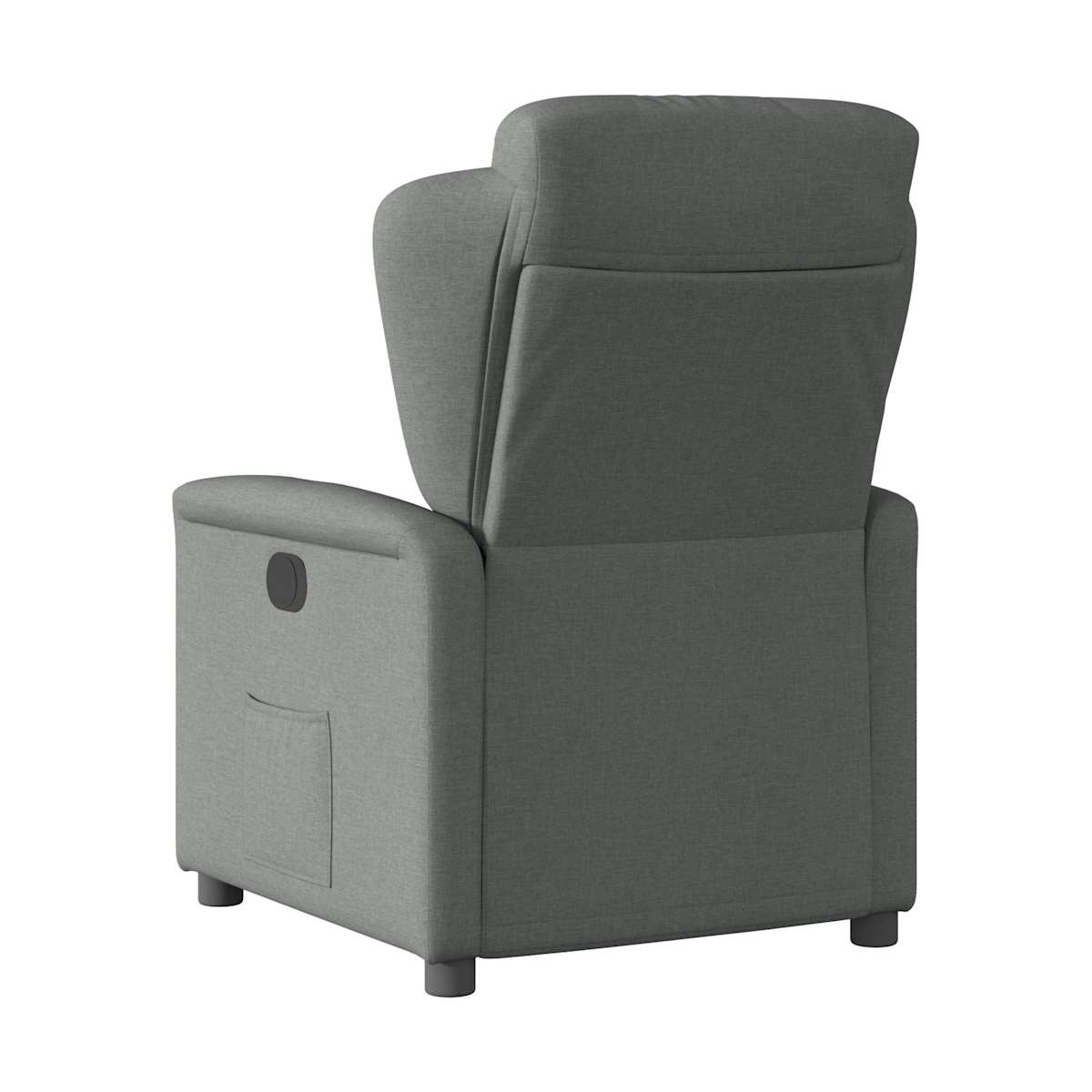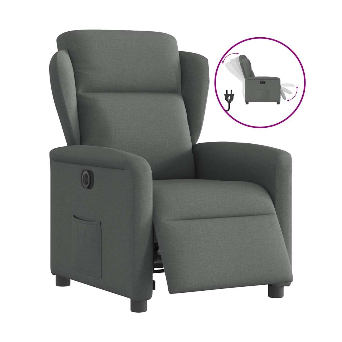 ¡Siéntate y descansa en este comodísimo sillón reclinable eléctrico! Función de reclinación eléctrica: Este sillón reclinable está equipado con un motor eléctrico para ajustar el reposapiés y el respaldo de forma automática a cualquier posición que desees con sólo pulsar el botón en el lateral del sillón. Esta característica permite una inclinación máxima de 135 grados. Además, el respaldo vuelve automáticamente a la posición original con sólo pulsar el botón.Cómodo asiento: El mullido asiento, el respaldo y los amplios reposabrazos cubiertos de tela proporcionan una sensación cómoda y acogedora, para que estés de maravilla mientras estás sentado. La tela posee un aspecto sencillo y limpio, y es transpirable y duradera.Práctico bolsillo lateral: Este sillón tiene un bolsillo lateral para que guardes tus cosas al alcance de la mano.Estructura maciza y estable: La estructura, hecha de madera y metal, proporciona una estructura y una estabilidad fuertes. Este sillón reclinables es cómodo y duradero.
