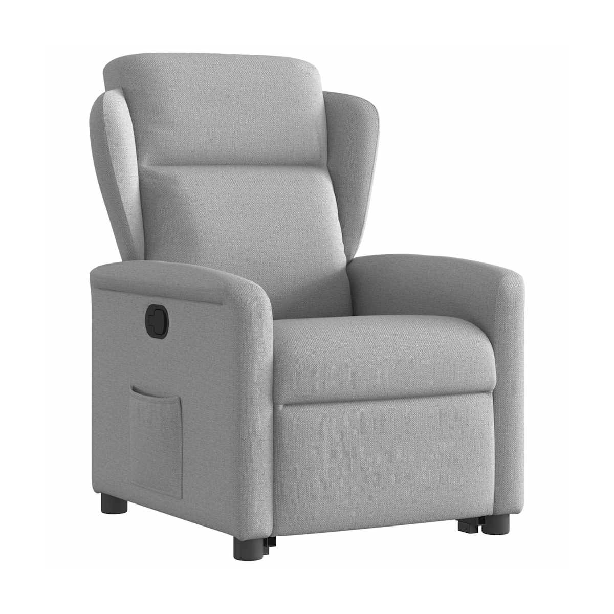 ¡Siéntate y descansa en este comodísimo sillón reclinable elevador! Función de elevación eléctrica: Este sillón reclinable para las personas mayores está equipado con un motor eléctrico para la función de elevación. Gracias a la función de elevación que empuja el sillón hacia arriba por completo, te puedes levantar fácilmente, sin tensiones en la espalda y las rodillas, con sólo pulsar el botón.Función de reclinado manual: Este sillón reclinable tiene un mango en el lado derecho. Con sólo tirar de él, puedes ajustar manualmente el reposapiés y el respaldo a cualquier posición que te resulte cómoda. Esta función permite una inclinación máxima de 135 grados. Además, el respaldo vuelve rápidamente a su posición original con solo tirar del mango.Cómodo asiento: El mullido asiento, el respaldo y los amplios reposabrazos cubiertos de tela proporcionan una sensación cómoda y acogedora, para que estés de maravilla mientras estás sentado. La tela posee un aspecto sencillo y limpio, y es transpirable y duradera.Práctico bolsillo lateral: Este sillón tiene un bolsillo lateral para que guardes tus cosas al alcance de la mano.Estructura maciza y estable: La estructura, hecha de madera y metal, proporciona una estructura y una estabilidad fuertes. Este sillón reclinables es cómodo y duradero.